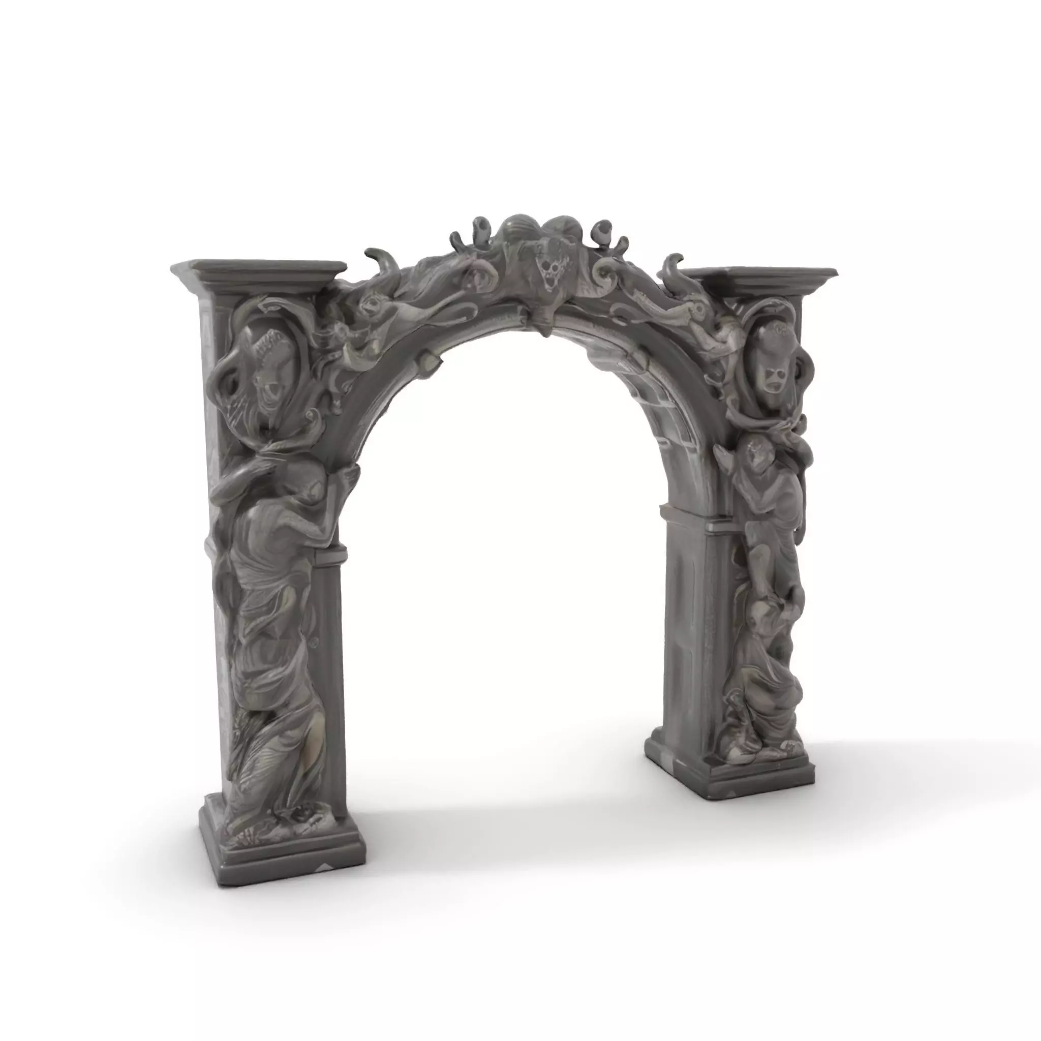 This intricate Baroque-style stone archway model showcases detailed sculptural elements, offering an elegant addition to architectural visualizations or historical recreations.