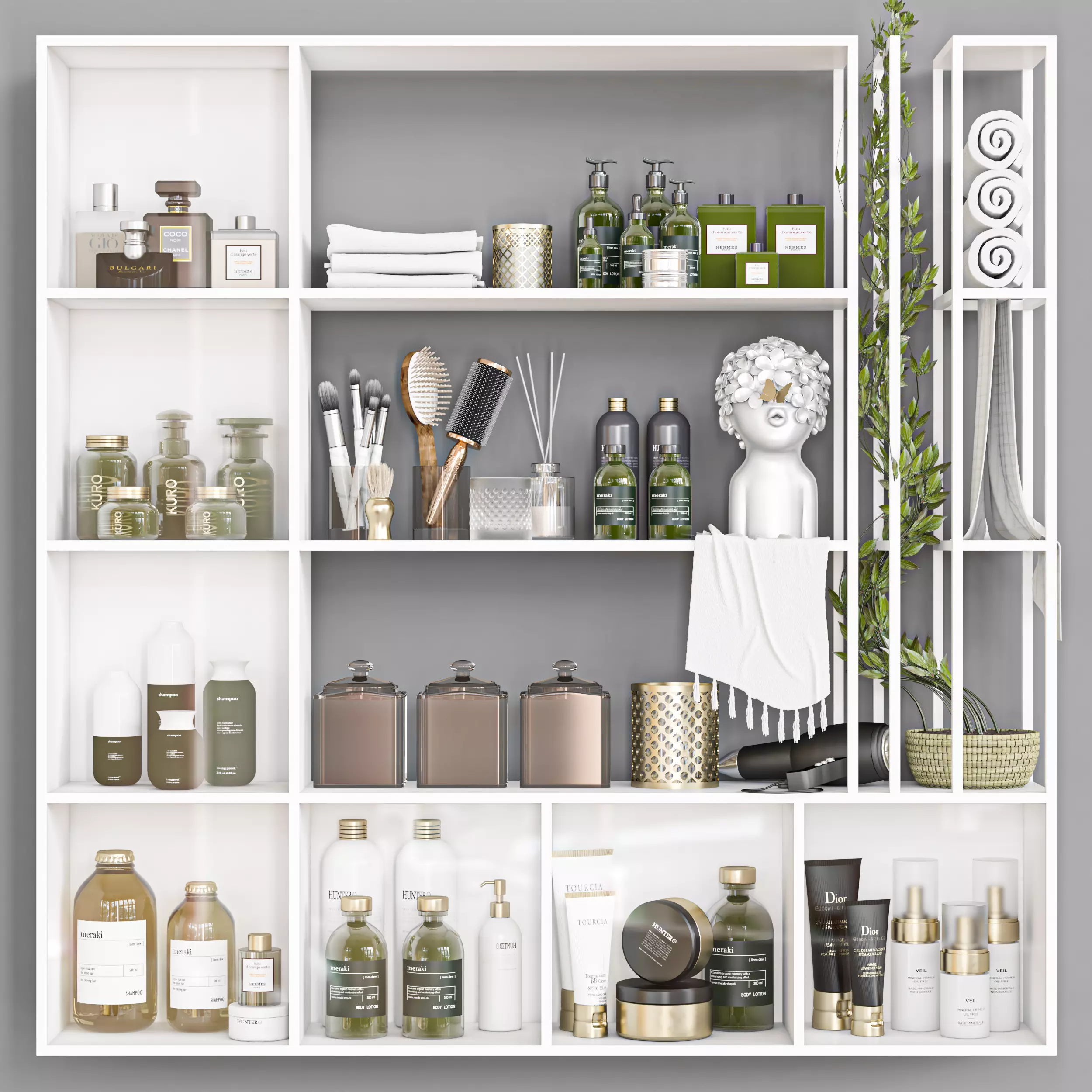 The model has material settings that define how surfaces look (color, shine, transparency, etc.).