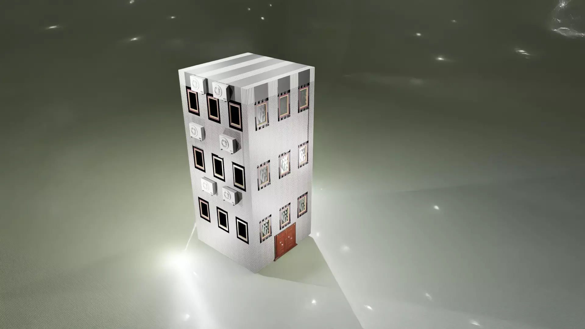 The model has material settings that define how surfaces look (color, shine, transparency, etc.).