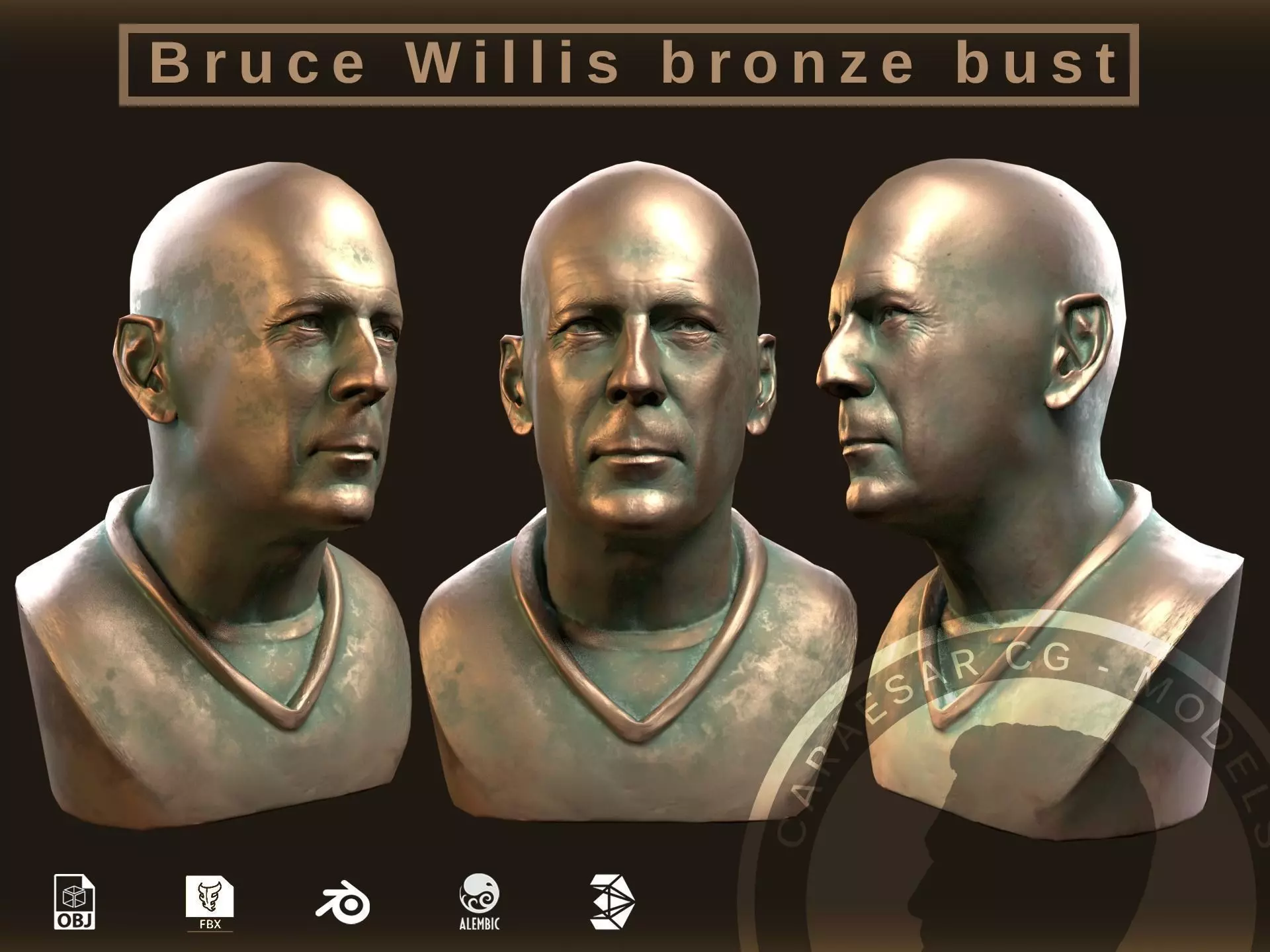 This is a reproduction of high quality and low poly of the face of the actor Bruce Willis, in addition the file provide a realistic oxidized bronze material, with a PBR textures system compatible with the most demanding video game engines such as Unreal Engine and Unity.