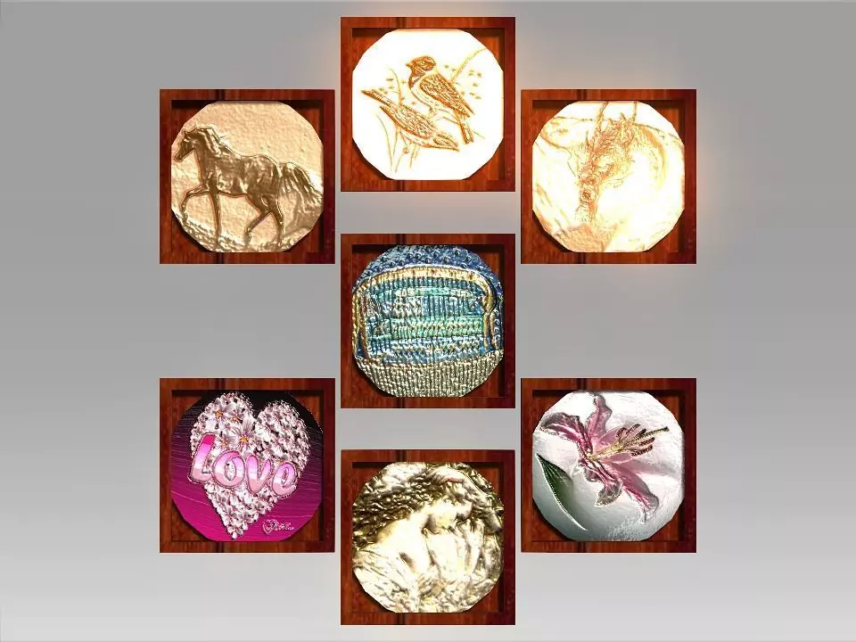 We have here some bump pics which can be good decoration :-Aphrodit : the beautiful goddess of beauty in ancient greek cevelization .-Birds : an art work of two pretty birds .-Dragon : an art work of formadble asian dragon head .-Flower : colorful art work of pink flower .-Horse : an artwork of the graceful strong arabian horse walk in the desert as he fly across the sands .-Love : it is said that the human can not live without love so it would be also good decor for a new married house .-Nut : The mystical magnefecint ancient gyptian goddess of havens who married to Geb the god of earth and got four kids ( Esis , Osiris , Nephteth , Seth ) and then the famouse legend of (Isis & Osiris ) Started , the pic is colorful and charming for nut covering the man kind nd the stars on her body .
