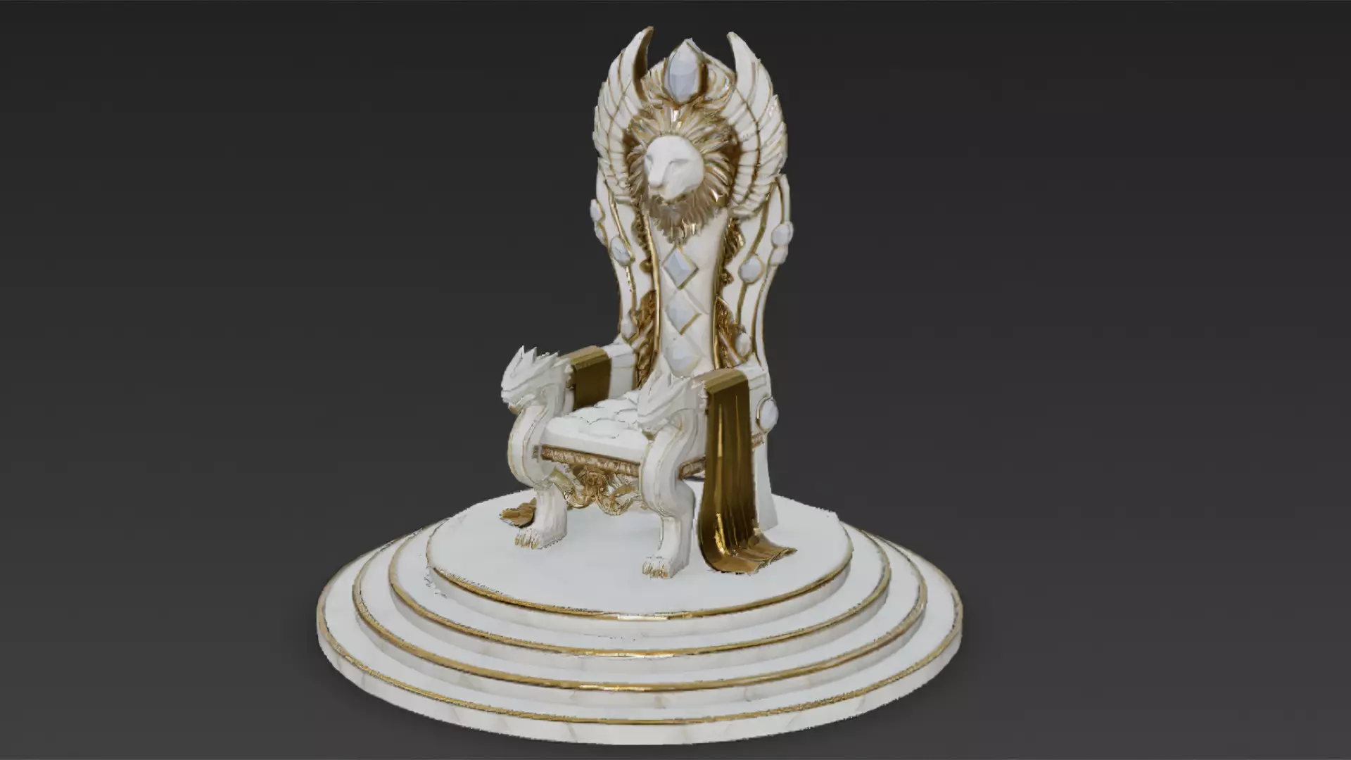 The model features ornate decorations, rich materials, and a regal color scheme, making it perfect for royal halls, castles, or high-fantasy environments.