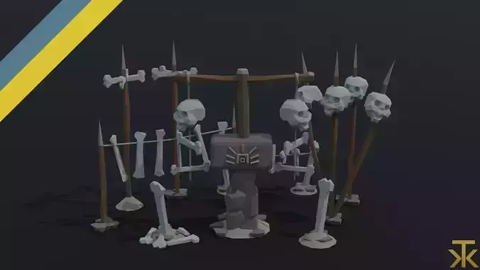 This is cartoon fantasy skulll totems Polygonal Style(9 object)