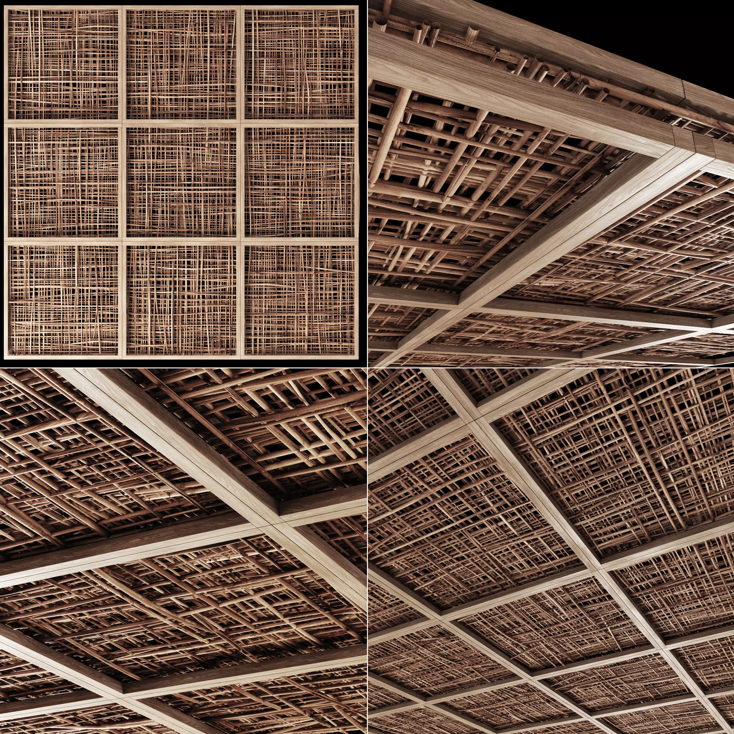 Ceiling wood cage thin branch n4 3D model