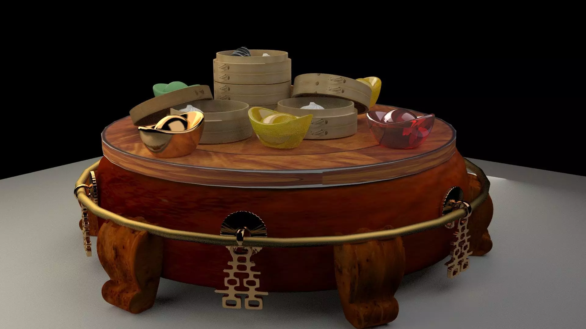 The model has material settings that define how surfaces look (color, shine, transparency, etc.).