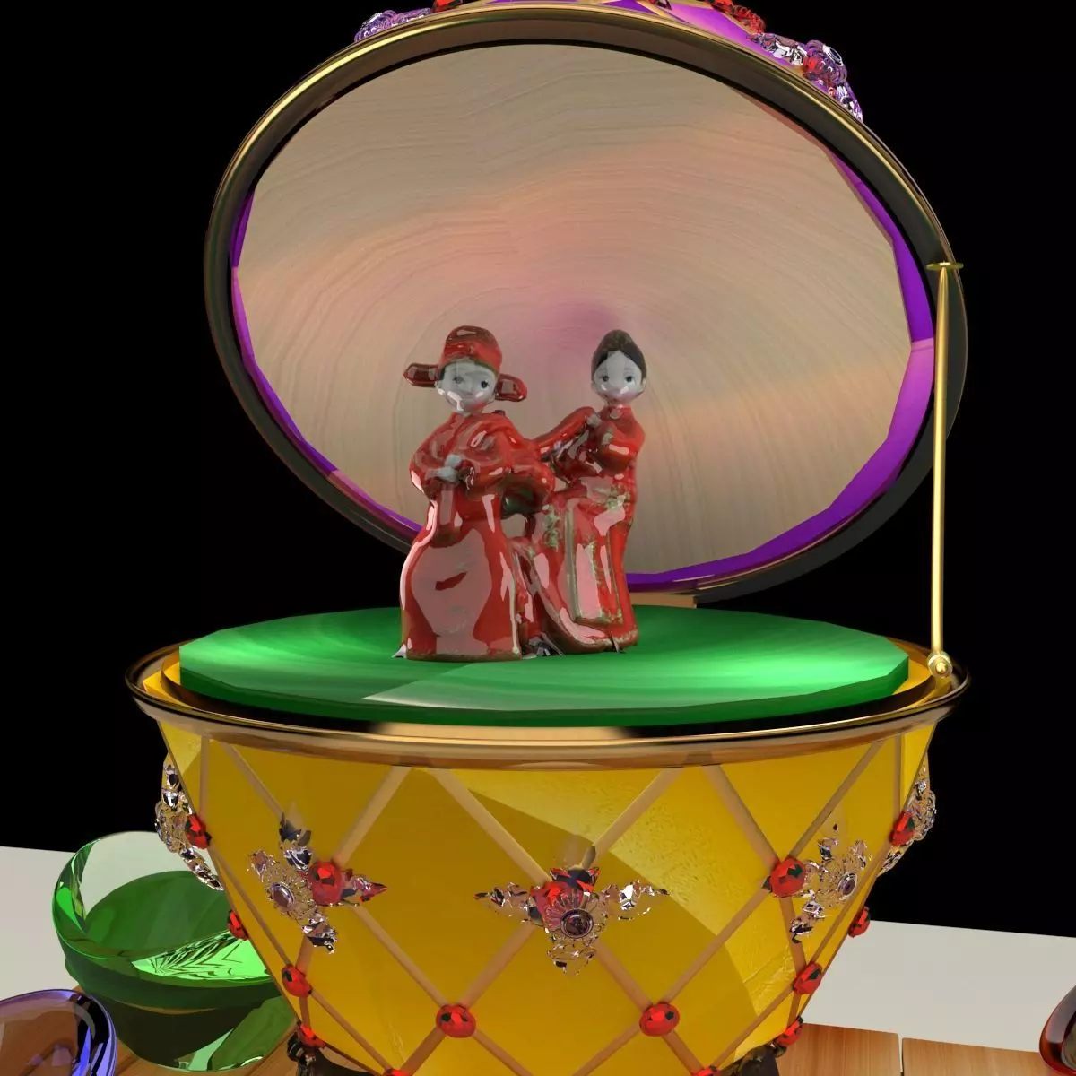 The model has material settings that define how surfaces look (color, shine, transparency, etc.).