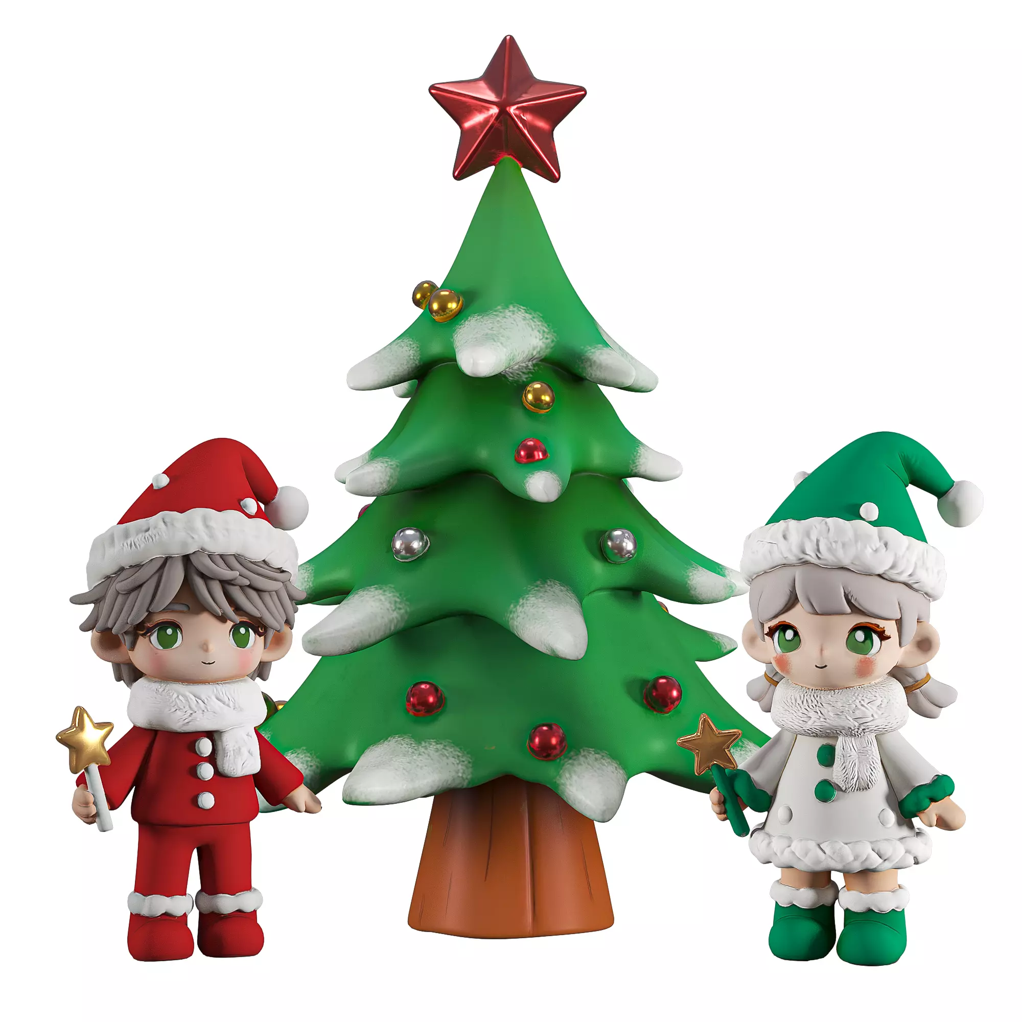 Bring the magic of the holidays to your projects with this charming 3D model set featuring two adorable chibi-style Christmas characters and a stylized Christmas tree. Designed with a soft, toy-like aesthetic, these assets are perfect for holiday greeting cards, animations, game assets, and festive renders.Character Design: The set includes a girl elf in a green/white outfit and a boy elf in a red/white outfit. Both feature oversized anime eyes, rounded facial features, and detailed winter accessories like Santa hats, fluffy scarves, and boots. They each hold a metallic gold star wand.Tree Design: A conical, cartoon-style pine tree featuring thick, soft layers of green foliage topped with snow caps. It is decorated with metallic red, gold, and silver sphere ornaments and crowned with a glossy red star.Material & Texture: The models showcase a high-quality plastiline or matte clay finish, giving them a handcrafted, tactile look. Contrast is provided by glossy, reflective materials on the ornaments and stars, and a fuzzy, felt-like texture appearance on the clothing trim.Geometry & Shape: The geometry is clean and smooth, utilizing rounded edges and soft bevels to enhance the cute, friendly appeal suitable for family-friendly content.Ideal for: Christmas visualizations, cartoon environments, New Year promotional materials, and 3D printing concepts.Name: Christmas_Decoration_Plastiline_Elves_Ornamented_TreeSet: 101Format: 3Ds Max 2017Export: FBX, OBJ, MATRender: VRay (7.x), Corona (13)Polys: 134083Verts: 134098Units: CentimetersDimension: 83.17 x 58.26 x 88.8Modeller: Azadeh Kheirandishelfchristmaschibifestiveholidaytreecartoonkidwintertoy