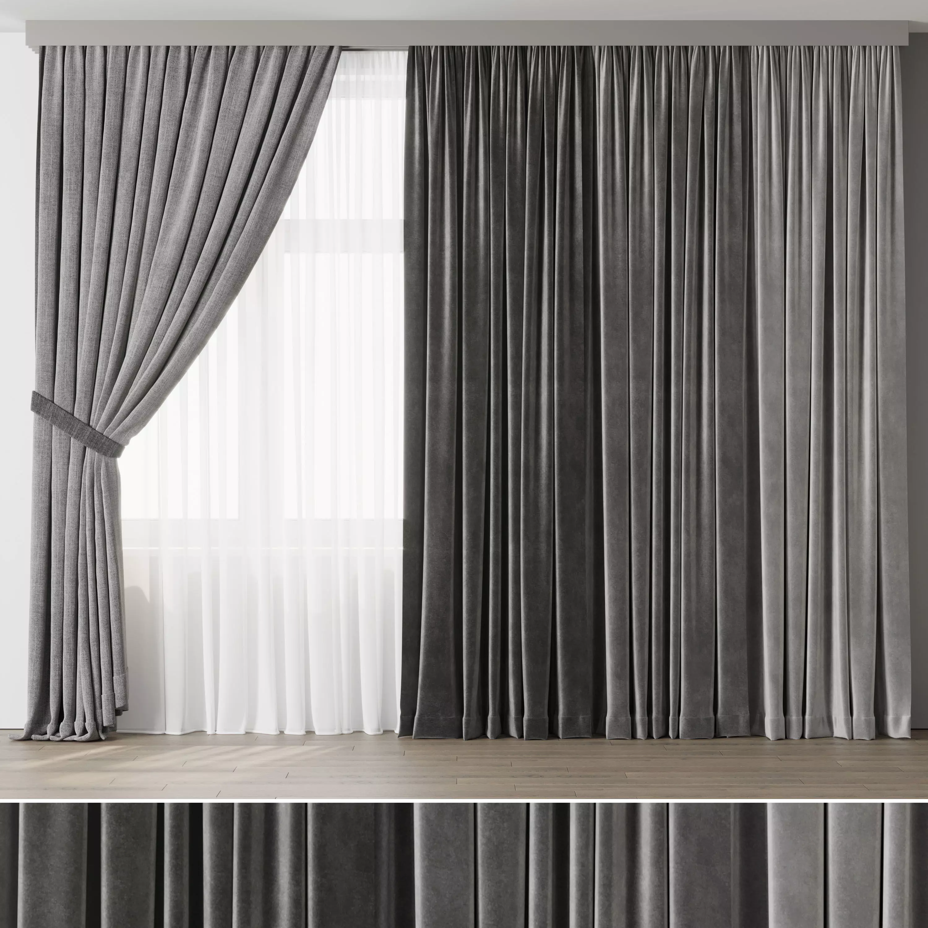 Classic Curtain with rod gray Curtains Collections 002 HBH Low-poly 3D model