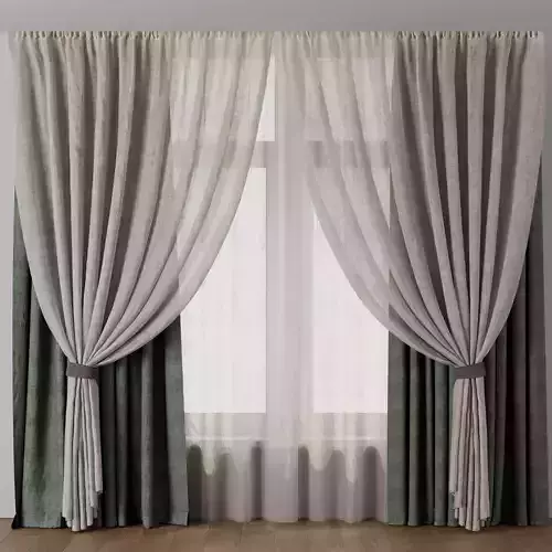 Classic curtains and linen tulle 002 Low-poly 3D model