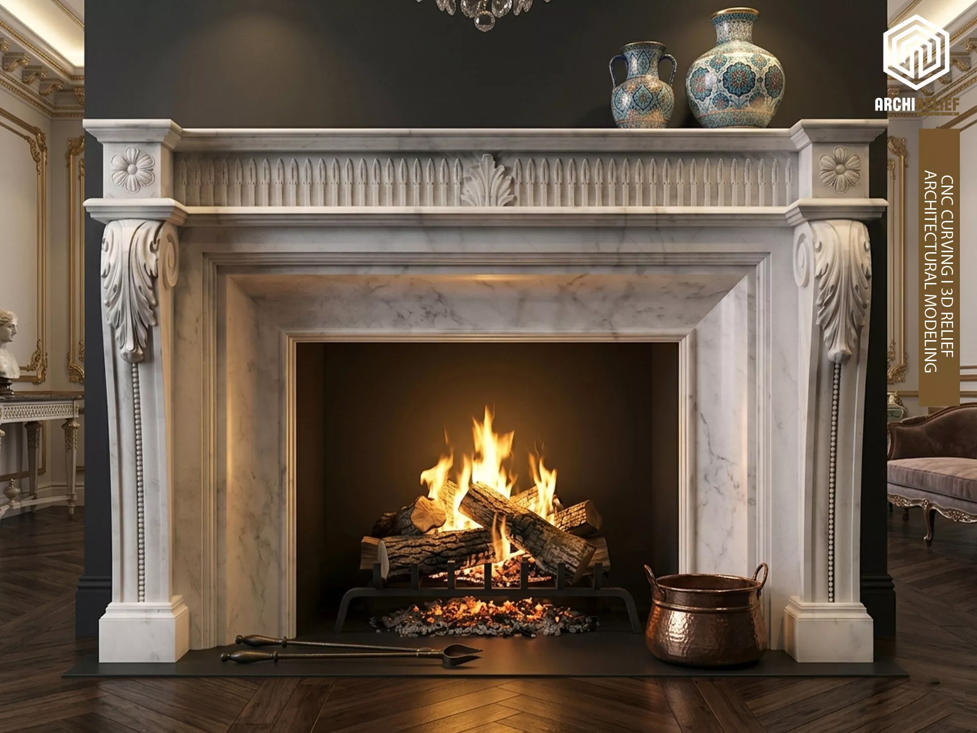 This classic marble fireplace is a highly detailed 3D model inspired by traditional European architecture.It features elegant carved ornaments, curved side columns, and realistic marble textures, making it ideal for interior visualization, architectural renders, and 3D printing.The model is clean and well-organized, suitable for both close-up renders and large-scale scenes.Perfect for classical interiors, luxury living rooms, and neoclassical design projects.Features:High-quality polygonal modelDetailed decorative carvingRealistic marble materialReady for rendering and visualizationClean topology and easy to editCompatible with 3ds Max, OBJ, and STL formats (if you include them)Uses:Interior design • Architectural visualization • Product presentation • 3D printing