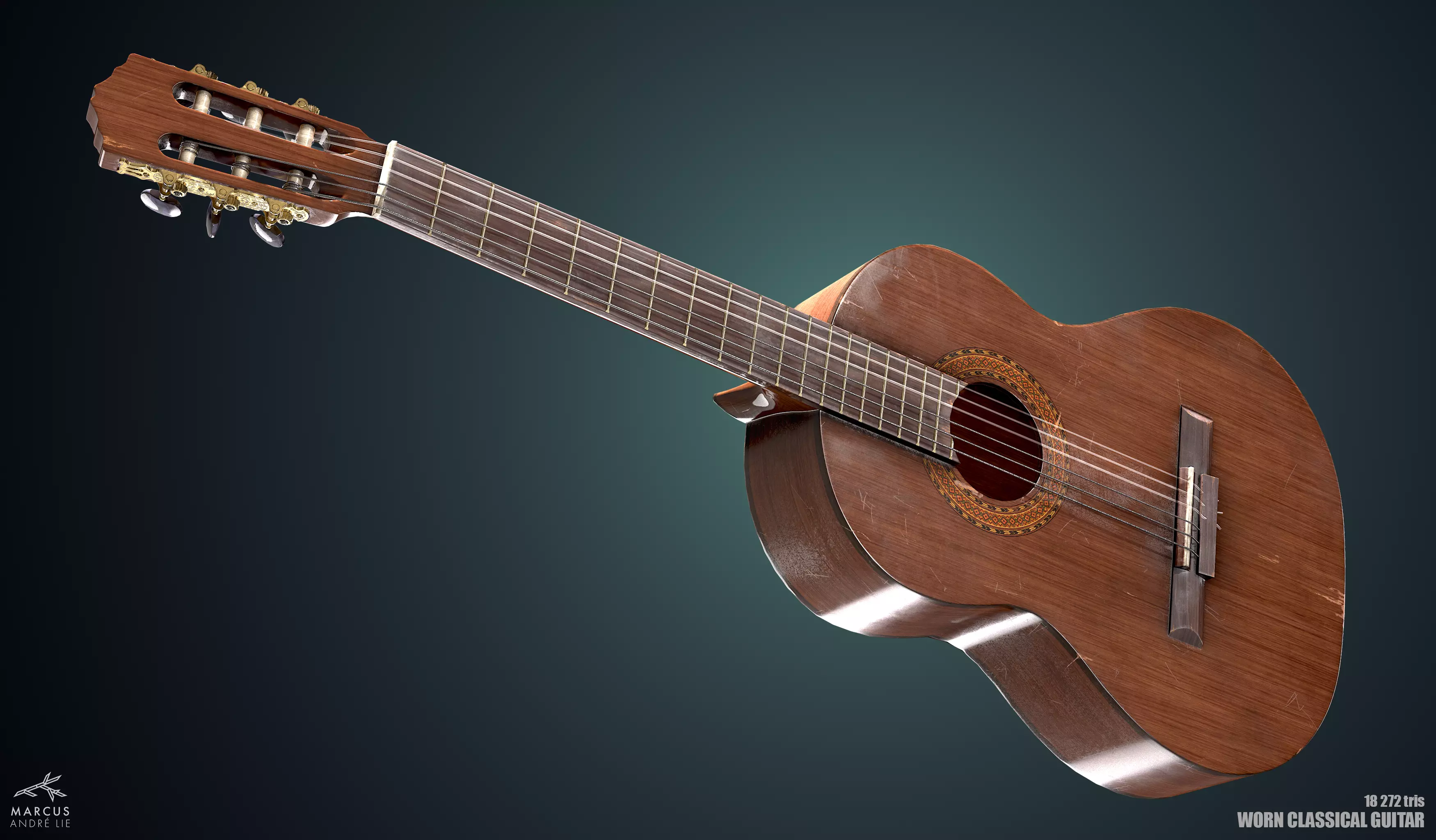 Game ready classical Guitar in both a worn version and a cleaner version.Model is modelled with being close to the screen in mind, like a hero prop.A high poly model was used to bake the normal map.