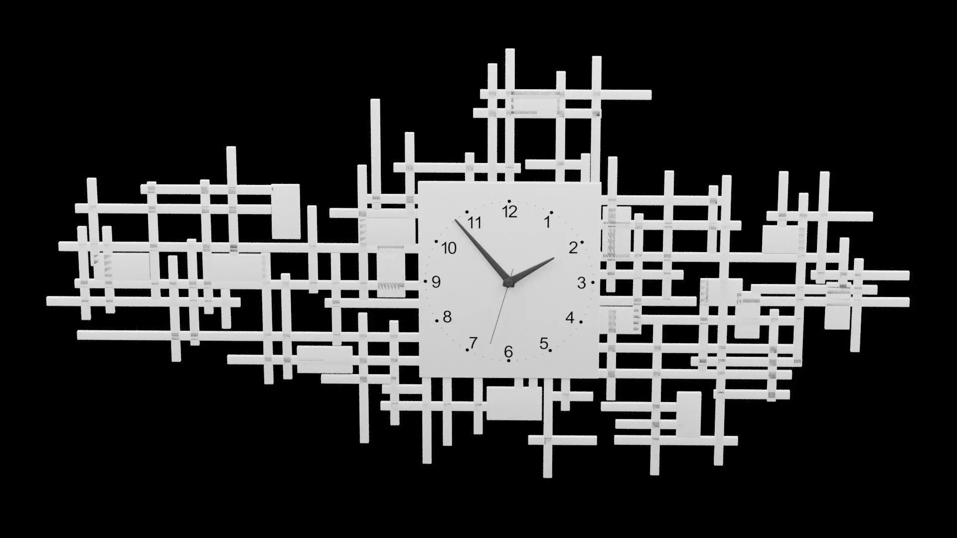 A wall-mounted clock featuring a bold, geometric design with a combination of sharp, angular shapes and minimalist lines. The clock’s frame consists of intersecting triangles or hexagonal segments, creating a dynamic and visually striking pattern. The clean design ensures both elegance and functionality, with easily readable time indicators and a sleek, modern esthetic. Ideal for contemporary and minimalist interiors, this clock adds a touch of sophistication to any space. Available in BLEND, FBX, and OBJ formats for easy integration into 3D projects.
