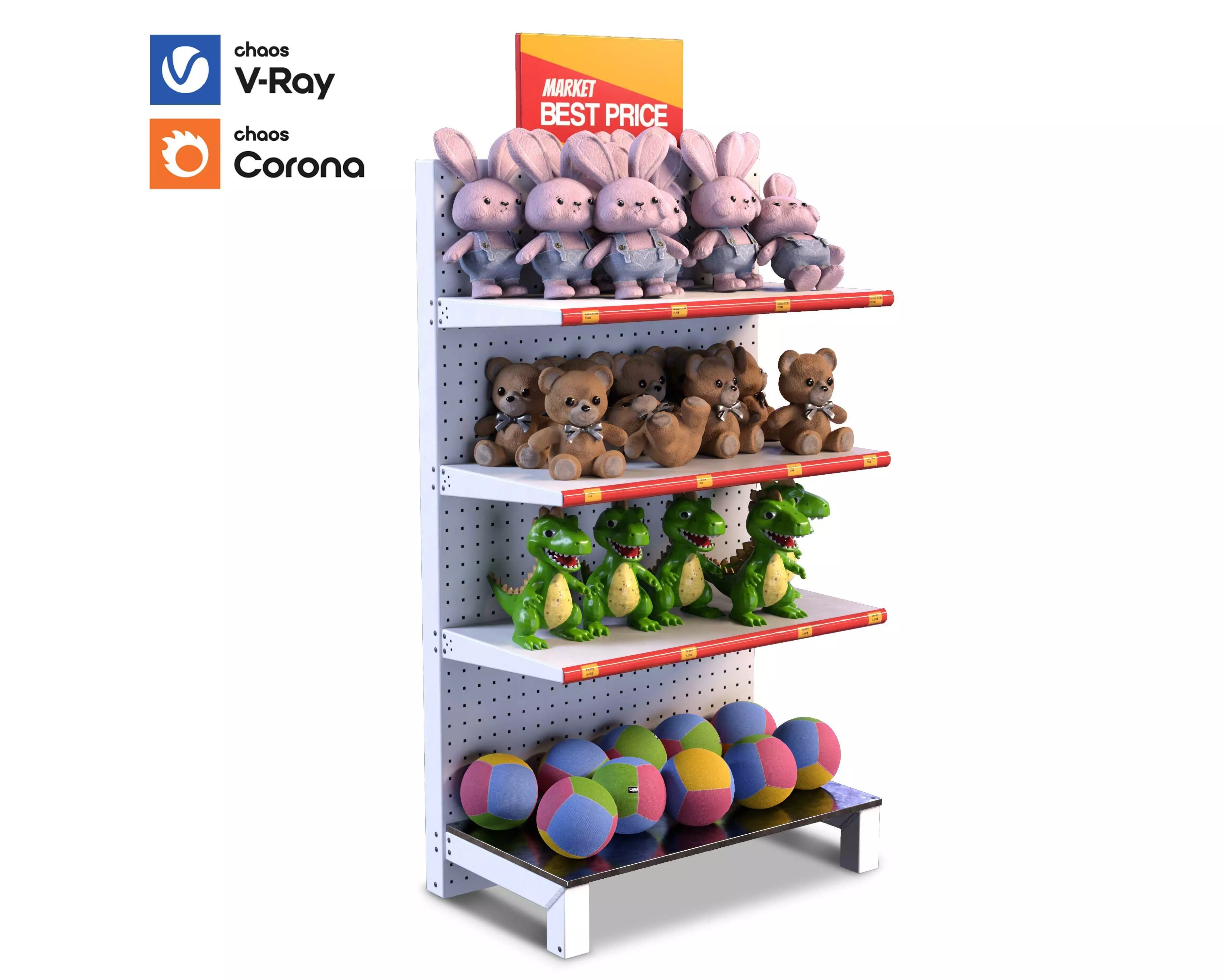 Introducing a detailed 3D model of a commercial doll stand, perfect for showcasing dolls in toy shops and large market visualizations. This product includes four distinct types of dolls, providing a versatile display option that can enhance various retail settings. Designed in low poly mode, it ensures optimal performance without compromising quality. The model features high-resolution 4K PBR textures, bringing lifelike details to your visual projects.