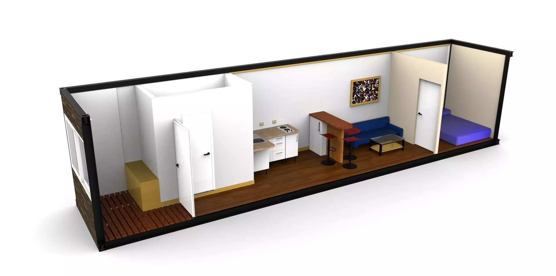 The model has material settings that define how surfaces look (color, shine, transparency, etc.).
