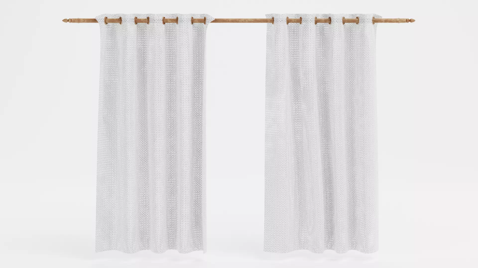 A ready-to-use curtain setup designed for quick placement in interior scenes. The model includes a wooden curtain rod with two fabric panels arranged in a natural open layout. The curtains feature a slightly heavier textile pattern with a subtle lace-like character, giving the fabric more visual depth in closer shots. This setup works well for interior visualization, architectural renders, or realistic room compositions.