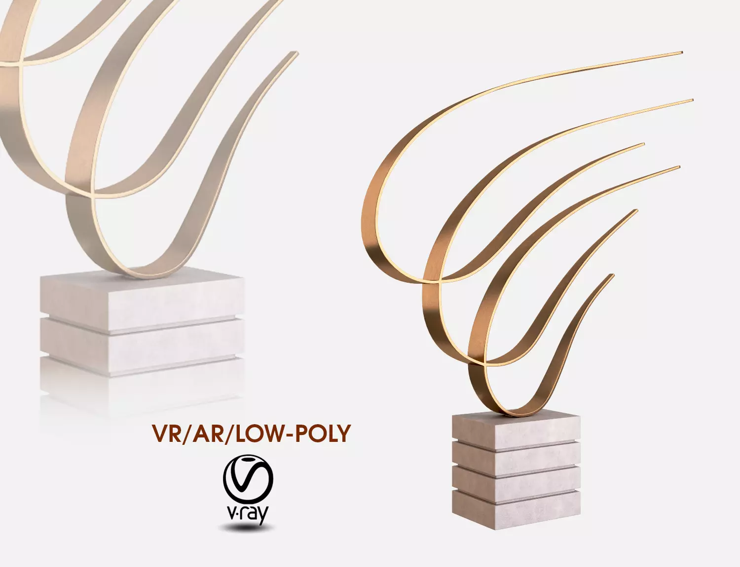 Dayday Modern White Marble and Gold Metal Ribbons Sculpture Low-poly 3D model