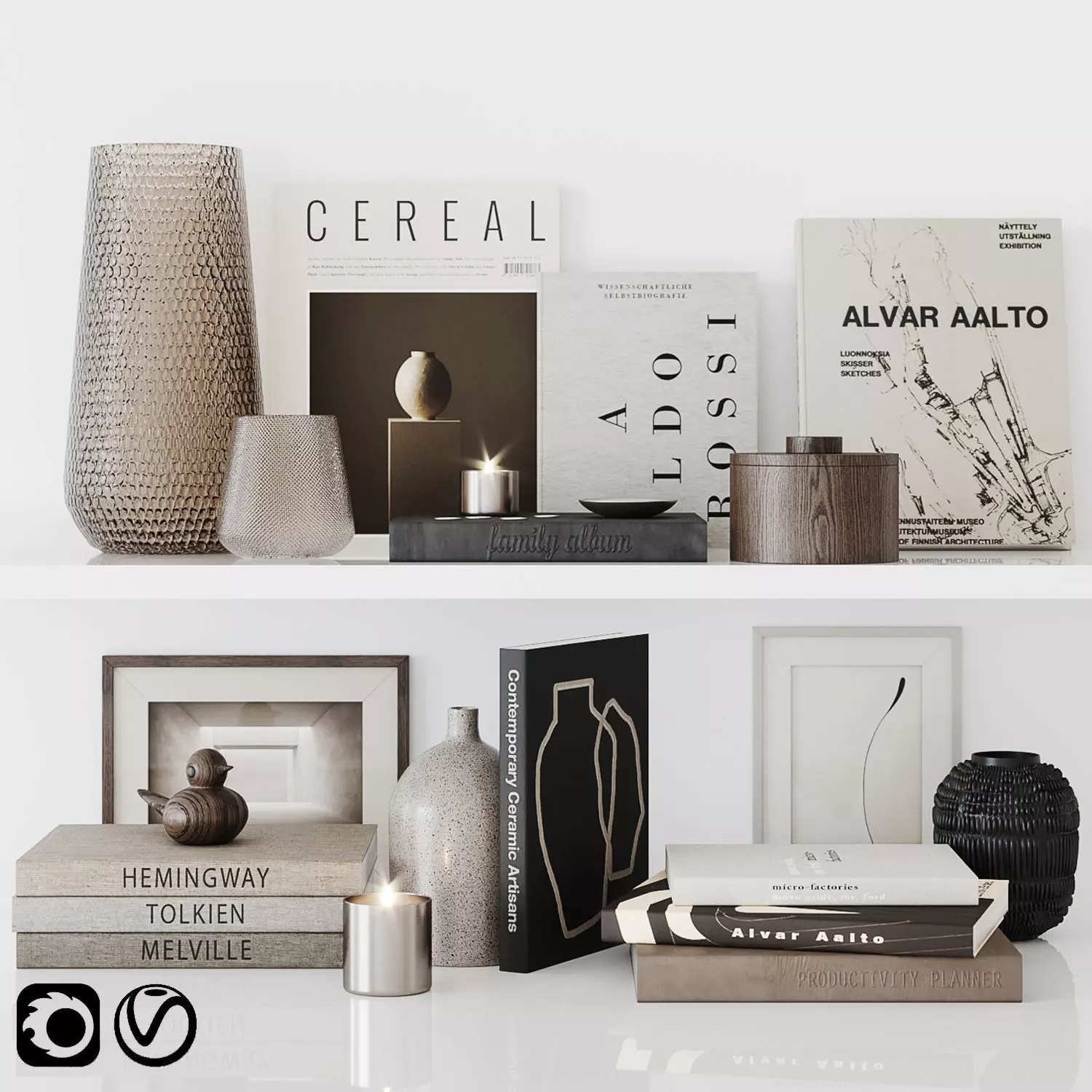 The model has material settings that define how surfaces look (color, shine, transparency, etc.).