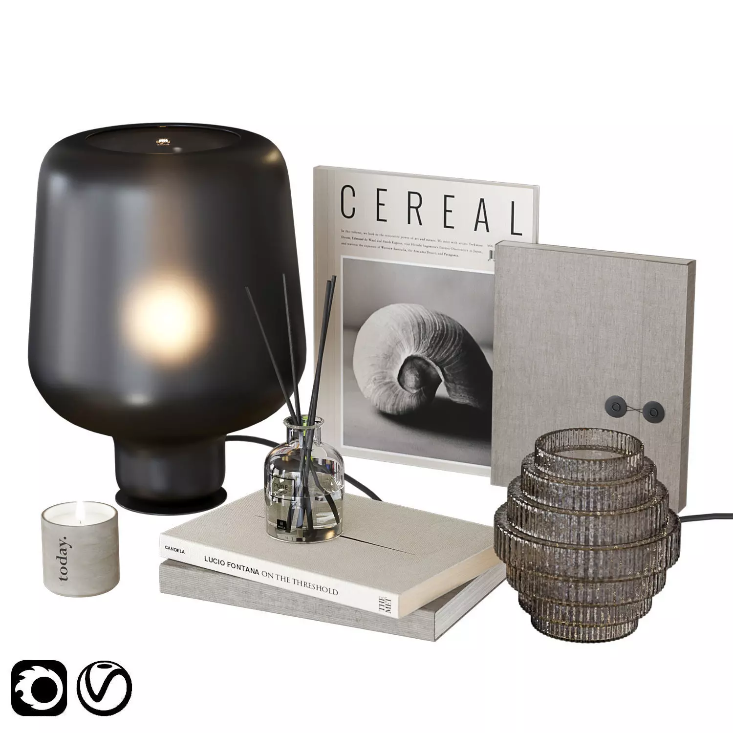 The model has material settings that define how surfaces look (color, shine, transparency, etc.).