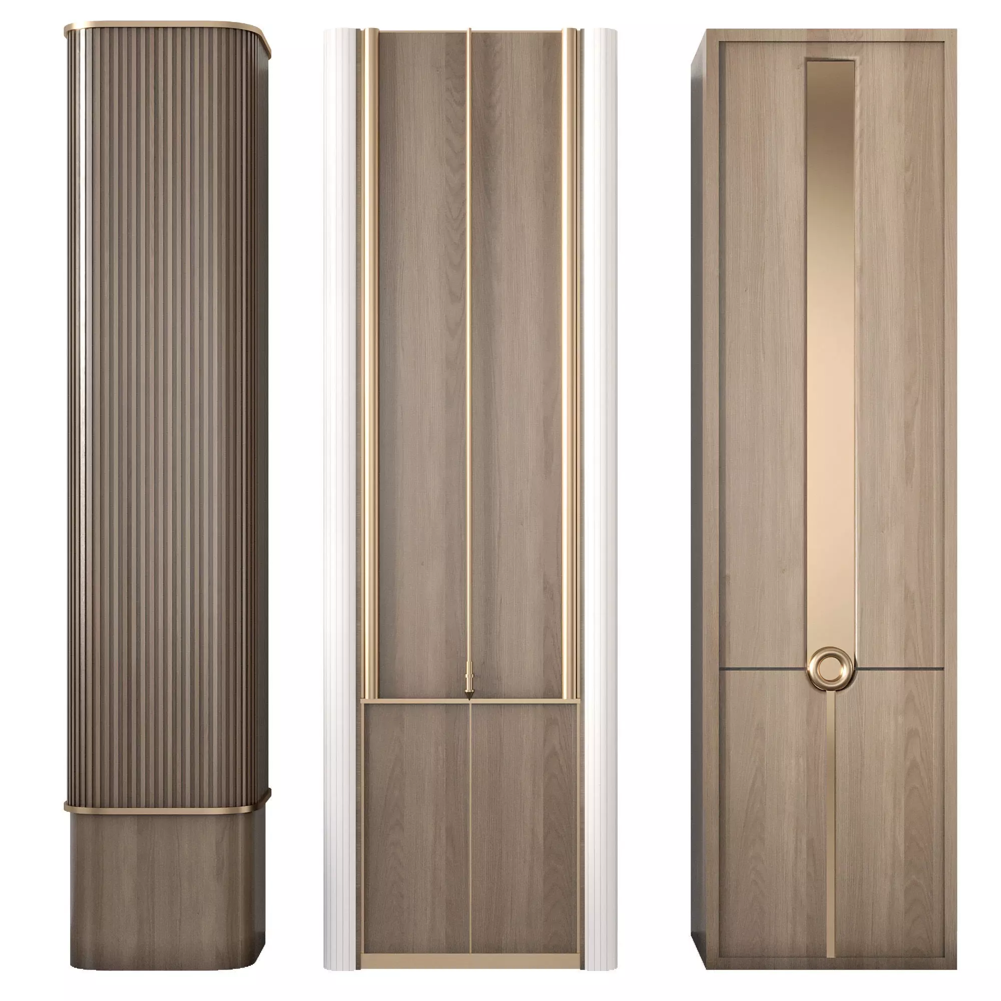 This 3D model presents a set of three unique decorative columns, each with its own design and detailing. Ideal for interior visualization, architectural projects, and luxury design concepts, these columns enhance spaces with elegance and style. The model is optimized for professional rendering and can be seamlessly integrated into both modern and classic environments. A perfect choice for designers seeking versatile decorative architectural elements.