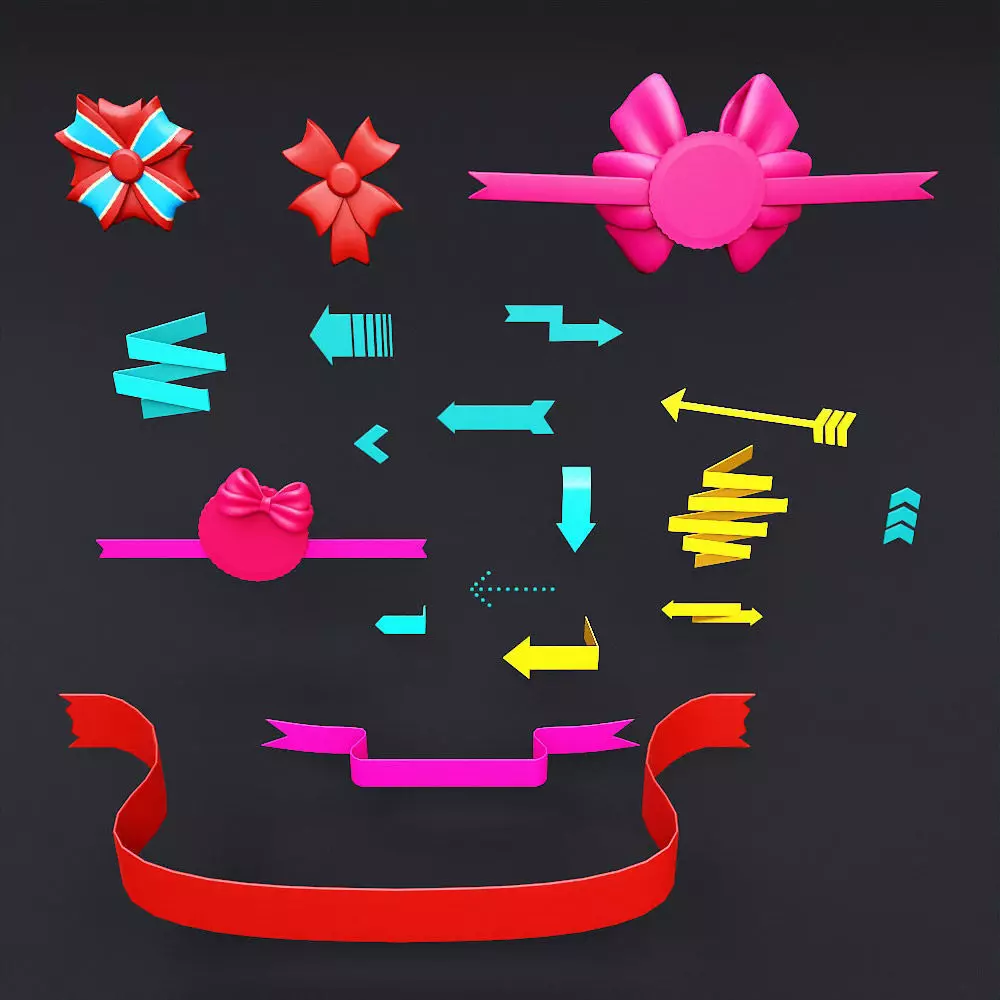 Decorative ribbon bands 3d model set Low-poly 3D model