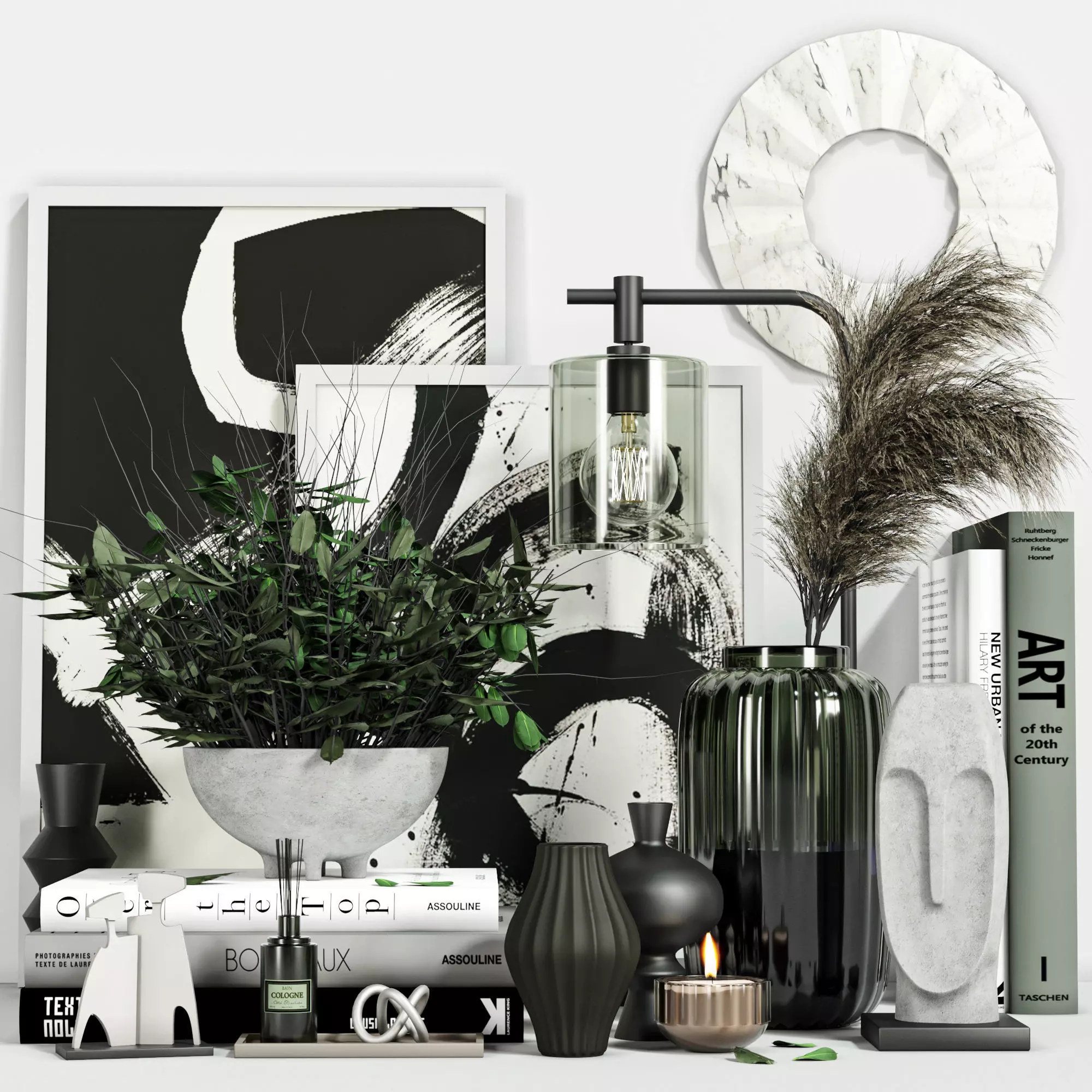 • contains about 20 PIECES like books, vases, panels, dried flowers and etc.