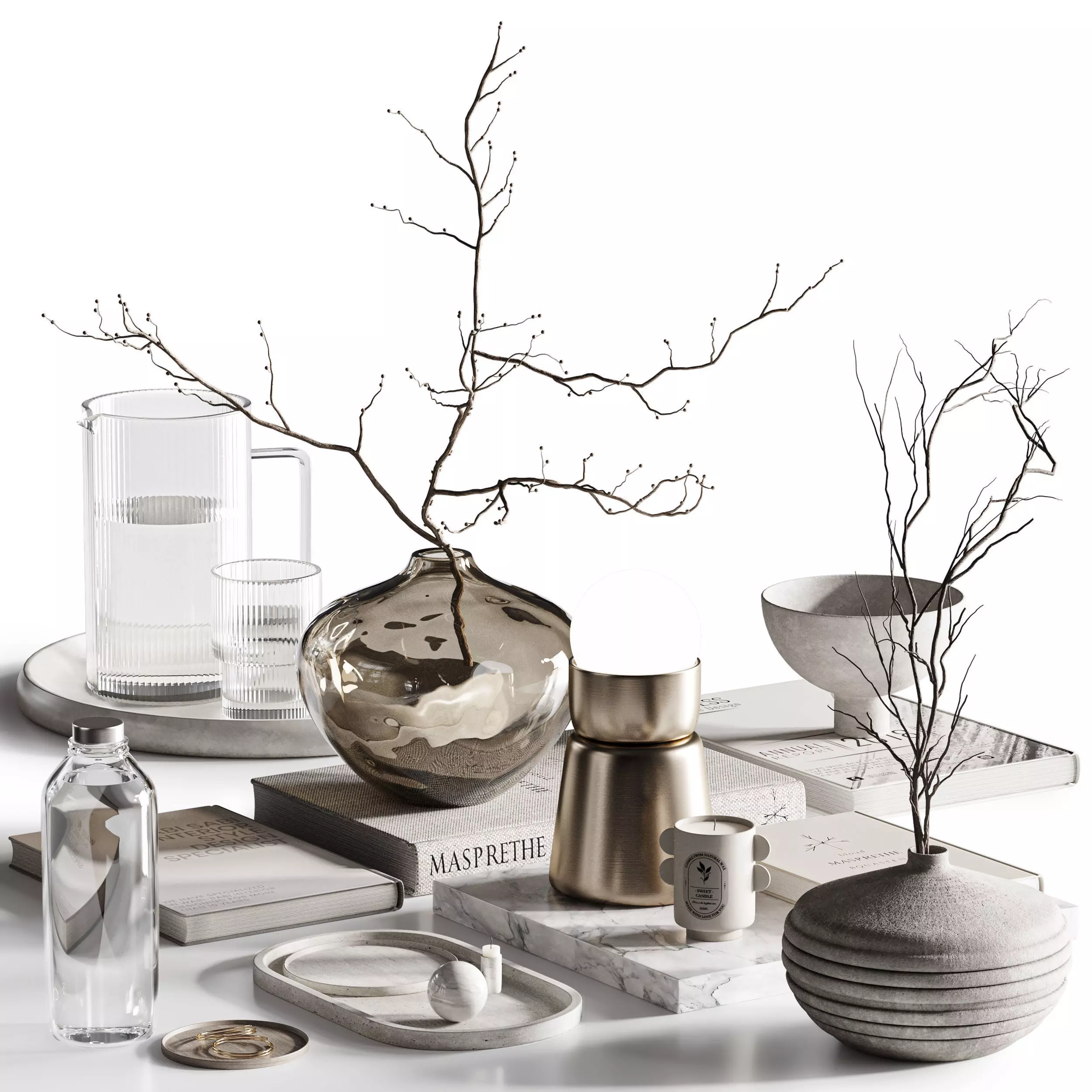 The model has material settings that define how surfaces look (color, shine, transparency, etc.).