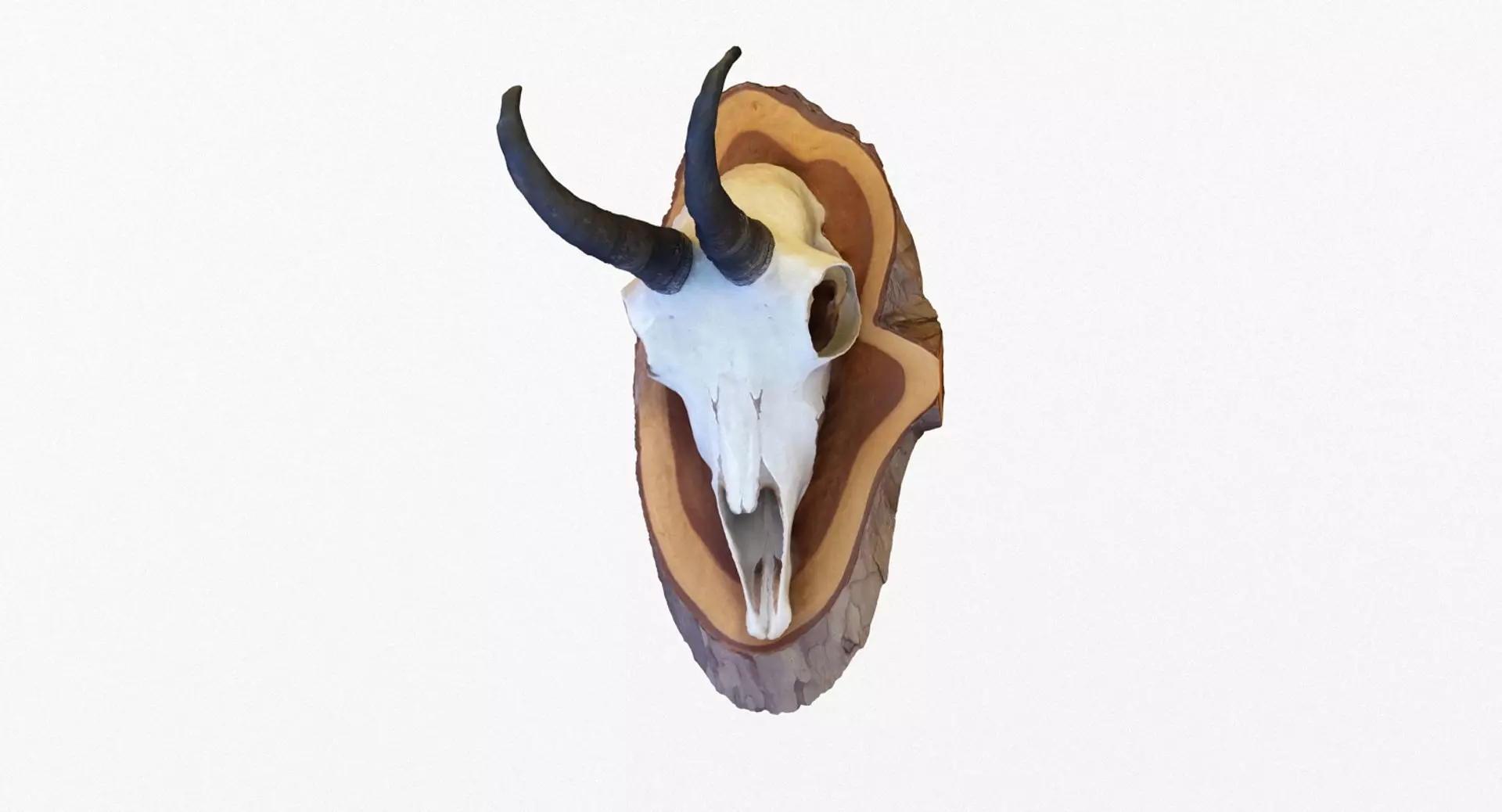 A DETAILED 3D MODEL OF A WALL-MOUNTED DEER SKULL TROPHY: