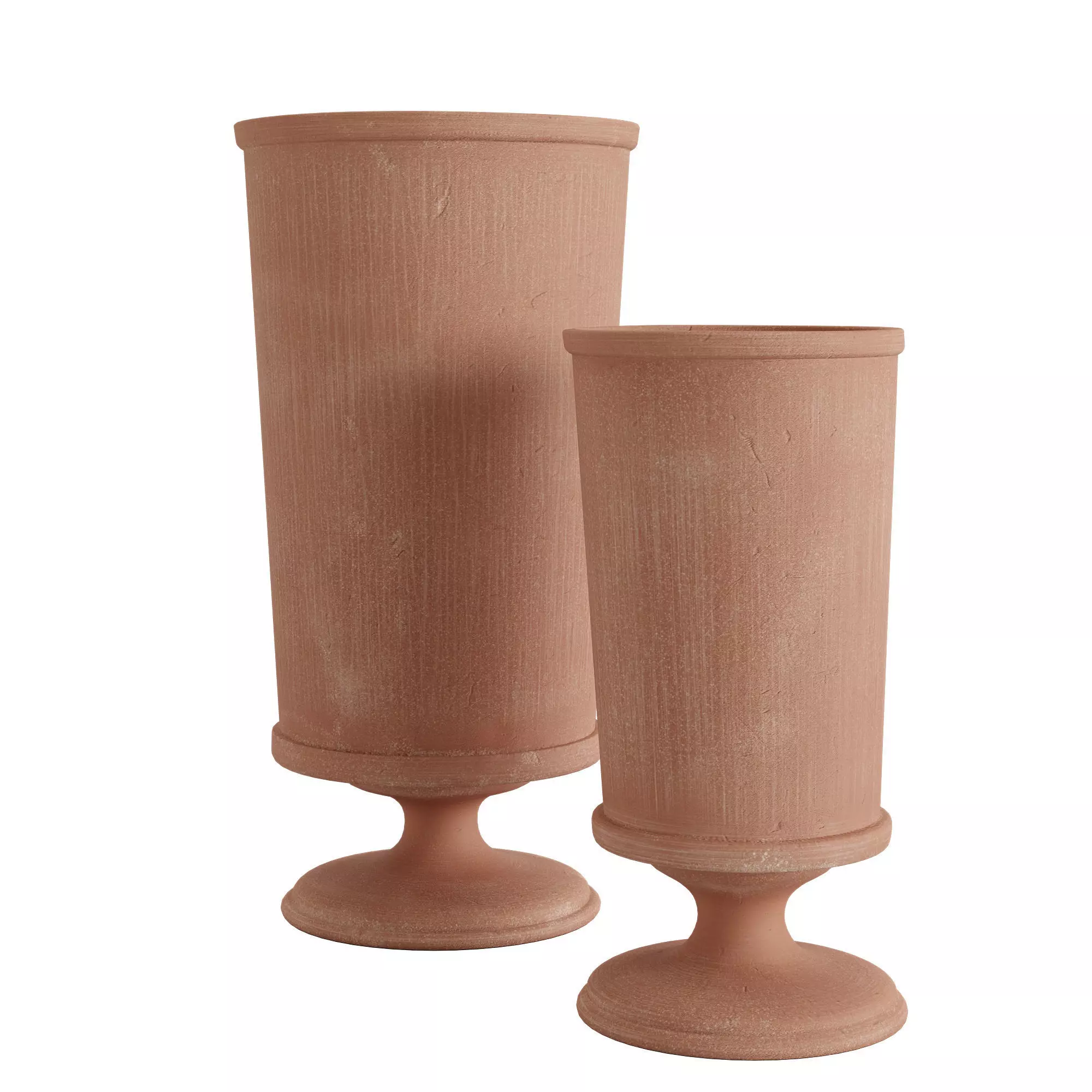 • Minimalist and elegant, these vases lend modern sensibility to the traditional urn silhouette. Perfectly rendered in cast aluminum with a powder-coated terracotta finish, they provide a touch of earthen beauty.
