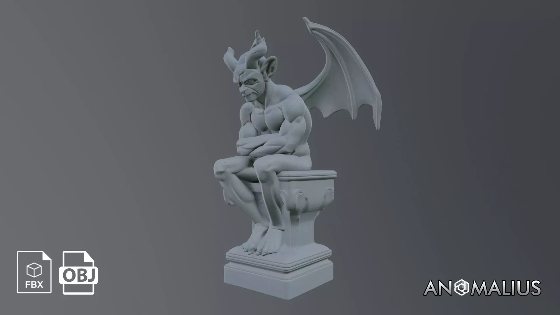 Gargoyle statue 3D model sitting on a stone pedestal with folded arms and bat-like wings.Designed as a game prop for gothic, fantasy, or horror environments.Ideal for background decoration in castles, churches, graveyards, or ruins.Works well for cinematic renders, concept scenes, and portfolio shots.Easy to place as an environmental asset to add mood and atmosphere.