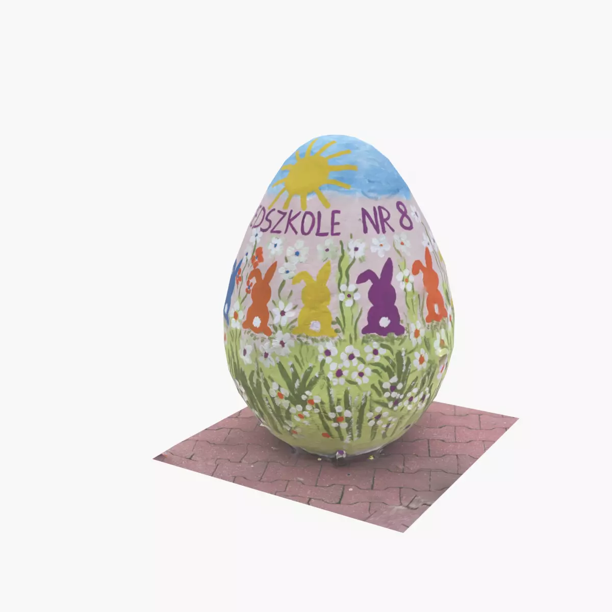Easter Egg on the street Kindy8 is low poly3dmodel scanned from a real sculpture in 1:1 scale, after retopology.Contains 6 textures 2048x2048 pixelsdiffusemetalnessroughnessspecularnormal mapambient occlusion