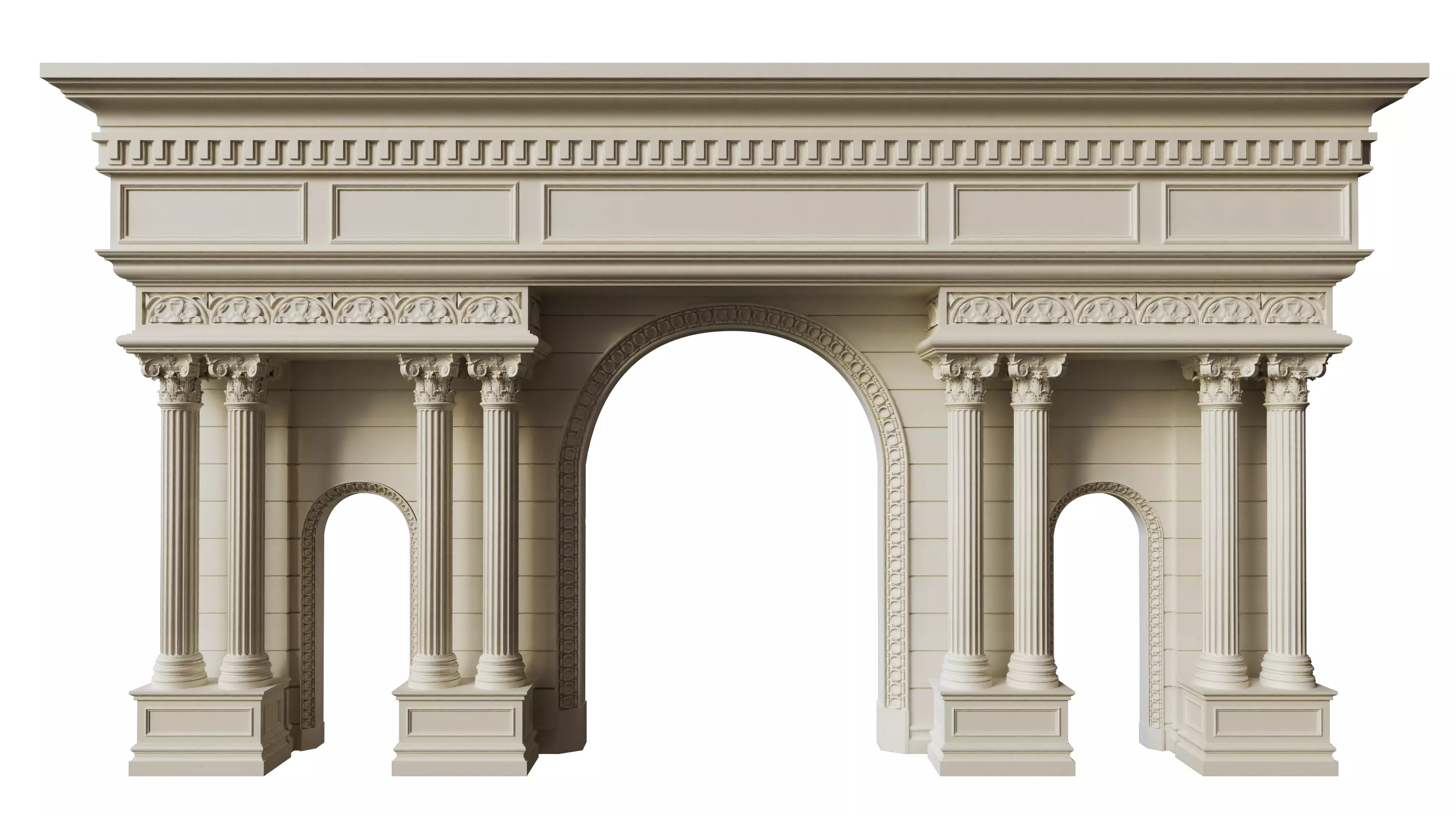 A magnificent 3D model of a classical European triumphal arch and colonnade. Featuring majestic Corinthian columns and intricate frieze detailing, this asset is perfect for high-end luxury villa entrances, palace scenes, historical reconstructions, and metaverse environments. The design offers a powerful visual presence and grand architectural scale.Key Features:Professional Modeling: Created in 3ds Max with a focus on classical proportions and intricate ornamentation (capitals, moldings, and dentils).V-Ray Ready: Pre-configured V-Ray materials ensure realistic light interaction and photorealistic results right out of the box.Universal Formats: Includes industry-standard .FBX and .OBJ files for seamless integration into Blender, C4D, Unreal Engine, and Unity.Clean Topology: Optimized for architectural visualization while maintaining high-fidelity details.Technical Specifications:Primary Software: 3ds Max (V-Ray materials included)Export Formats: FBX (.fbx) and OBJ (.obj)Geometry: High-poly for maximum detailMaterials: Fully assigned and textured for V-Ray