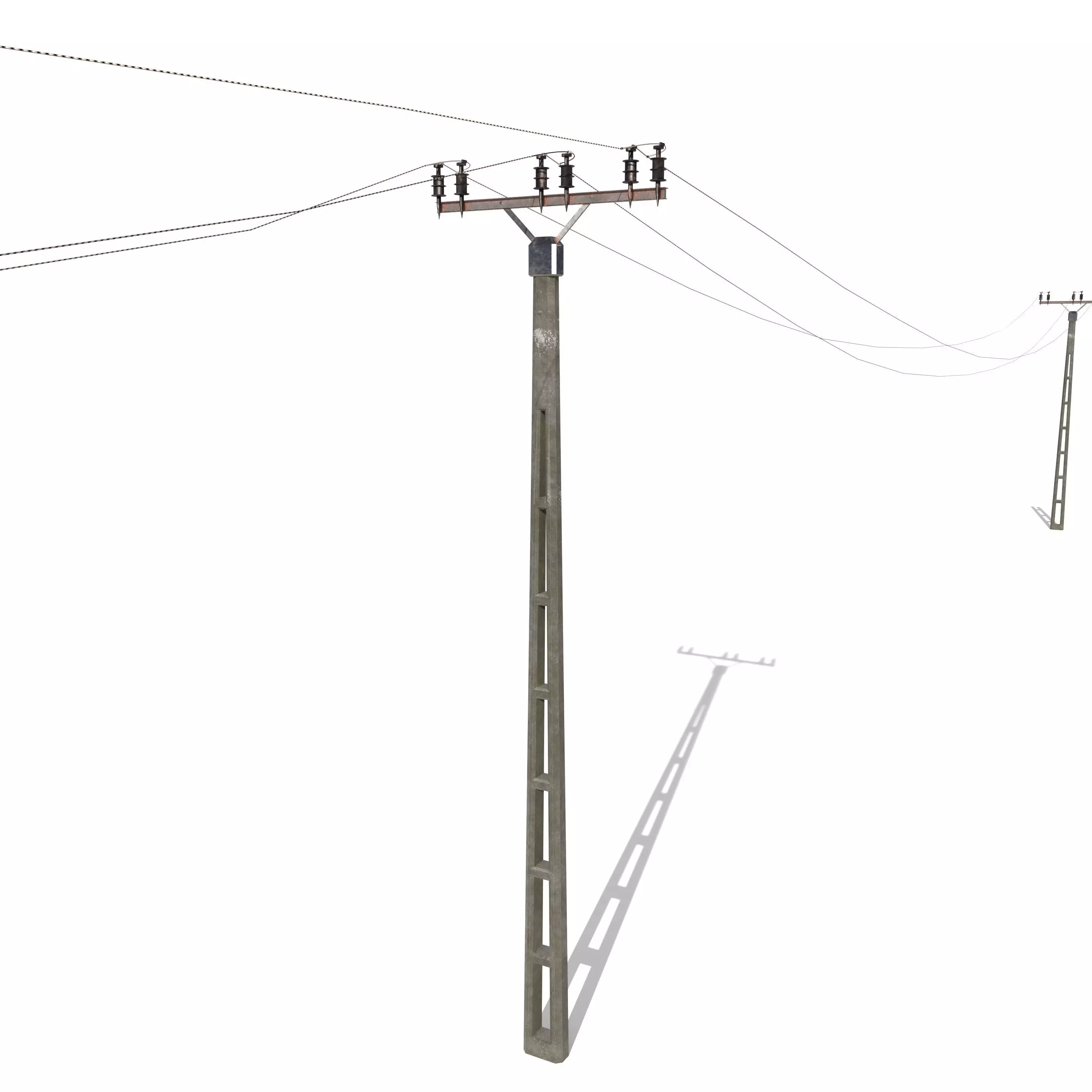 Electricity poles model built in Blender and rendered with Cycles, with PBR materials, Game-Ready. The setup is built of 3 poles with cables between, ideal for seting up arrays.