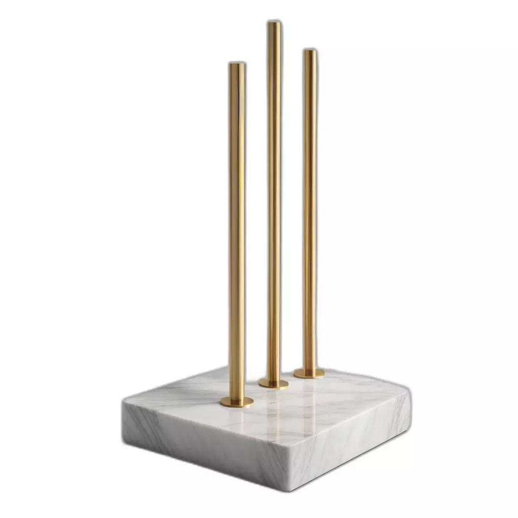 This exquisite 3D model presents a sophisticated and modern decorative sculpture, perfect for enhancing any virtual interior space. It features a robust, polished white marble base, showcasing intricate natural veining that adds a touch of luxury and realism. Rising elegantly from the base are three sleek, cylindrical golden pillars of varying heights, crafted with a smooth, reflective metallic finish. This versatile asset can be seamlessly integrated into a multitude of projects, including high-end architectural visualizations, interior design renderings, virtual staging for real estate, and sophisticated game environments or AR/VR applications where detail matters. The model is meticulously crafted with clean, efficient topology, ensuring smooth deformations and excellent performance. It is fully UV unwrapped with no overlapping UVs, making it ready for advanced texture applications. The included PBR textures deliver realistic material properties, from the subtle reflectivity of the marble to the specular sheen of the gold, guaranteeing a stunning visual fidelity in any render engine. This asset is suitable for both close-up static renderings due to its high detail and can be optimized for real-time applications with appropriate LODs. It comes prepared for subdivision if even higher mesh density is desired. Supported file formats include GLB, OBJ, STL, ABC, DAE, FBX, USD, and PLY, providing broad compatibility across various 3D software and platforms. Elevate your digital scenes with this elegant and contemporary piece.