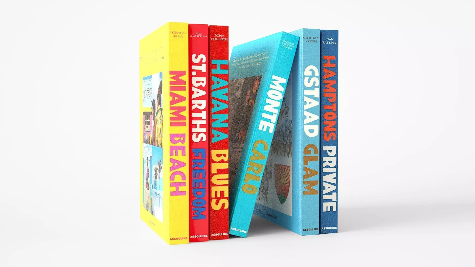 You get a 3d model of the assouline coffetable books encyclopedia, monte carlo, gstaad glam, st. barths freedom, havana blues, hamptons private, miami beach.