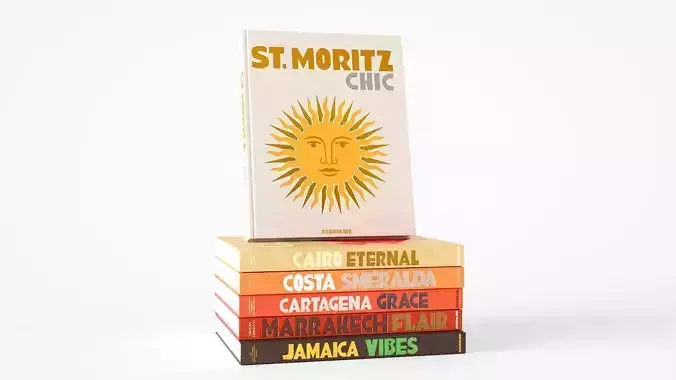 You get a 3d model of the assouline coffetable books encyclopedia, jamaica vibes, costa smeralda, cairo eternal, marrakech flair, cartagena grace, st. moritz chic.