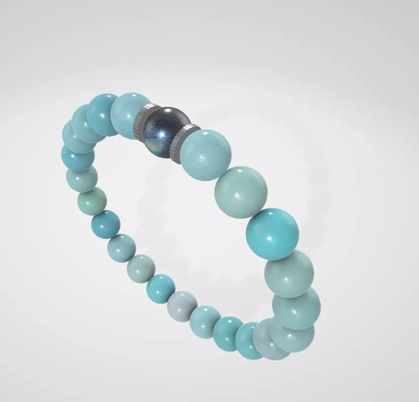 FABACH Amazonite Pearl Bracelet-created by blender mesh clean, soft, smooth. -mesh count less than 200000 -created by mesh 4 -main axis (0,0,0) is located at the lowest center point of the product -attached material with substance paint -exported to glb view -has accompanying textures: diffuse, normal, hight, ao, roghness