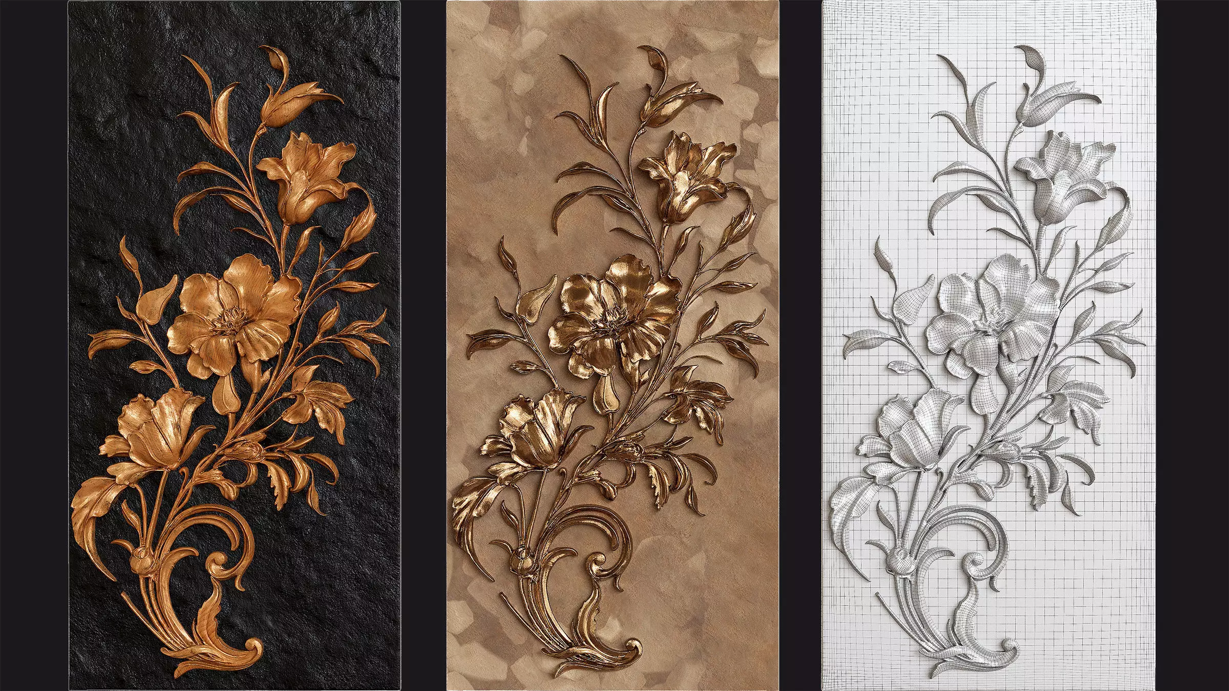 Ready for 3D printing Clean and highly detailed sculpt Includes Corona + BPR setup inside 3ds MaxIdeal for decorative rendering, CNC carving, and interior visualizationHigh-quality floral relief sculpture, created in ZBrush and optimized for 3D printing and visualization.Rendered in 3ds Max with Corona Renderer, using BPR-style lighting and material setup to enhance sculpted detail and surface depth.Includes all ready-to-use files and materials.