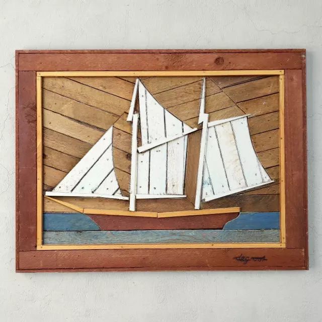 Folk Art Painted Wood Lathe Assemblage Ship 3D model
