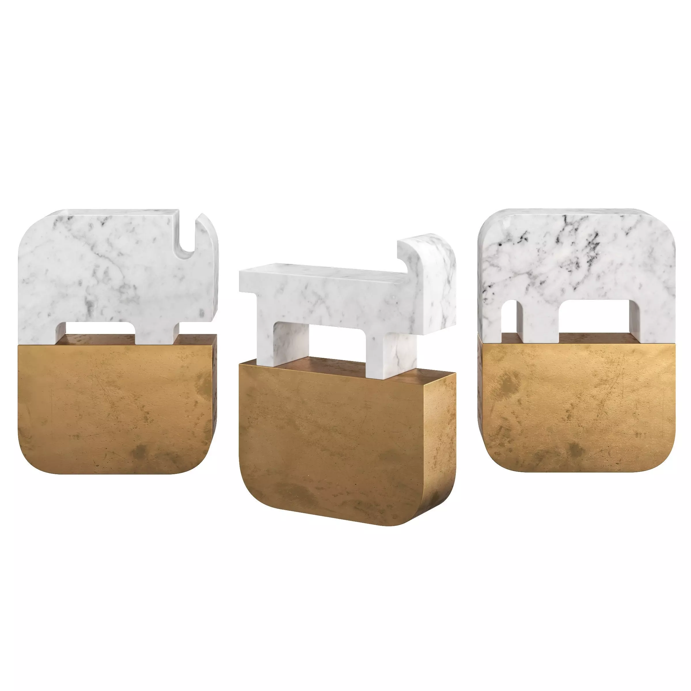 Description: Archeologists uncover an ancient stone, made of marble and metal, both tooled with great skill. There are other objects of differing geometries. Signs, symbols, sculptures bearing messages from the distant past. The marble is Bianco Carrara, with a base in a nidrall metal.