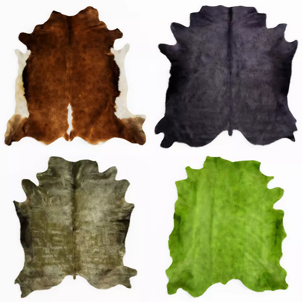 3ds Max 2013.V-Ray 2.40.03. The archive has four folders with carpets. File formats obj, fbx without wool. European Rug Cowhide Brown and White, size: 170x170 cm. Gray Violet Cowhide Rug, size: 242x242 cm. Green Cow Hide Rug, size: 243x210 cm. Green Cowhide Rug, size: 245x212 cm. Before rendering, go to the Rendering - Effects tab, click on Hair and Fur and select mr prim mode below. If there are problems with the rendering of fur, write to me. I will try to help you. System units mm.