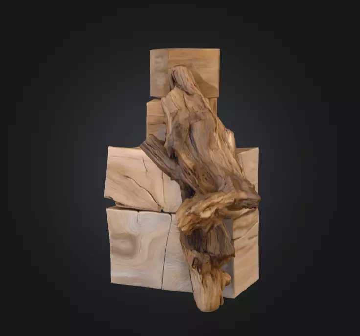 Optimized with PBR materials, the driftwood section displays realistic roughness, shadows, and natural grain variations, while the smooth wooden blocks highlight fine craftsmanship with polished edges and soft lighting reflection. This model is ideal for environment storytelling, museum exhibits, fantasy shrines, modern architectural decor, or symbolic set pieces within games and cinematic renders.
