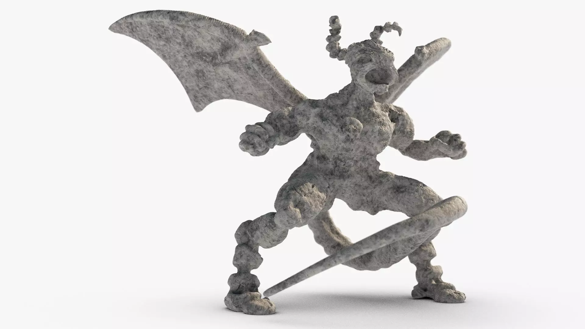 A gargoyle sculpted with Zbrush. The object is Low Poly, with use of a displacement texture.