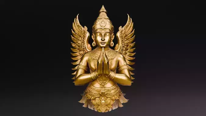This model features finely detailed wings, ornaments, and traditional sculptural form, suitable for real-time rendering as well as cinematic scenes.