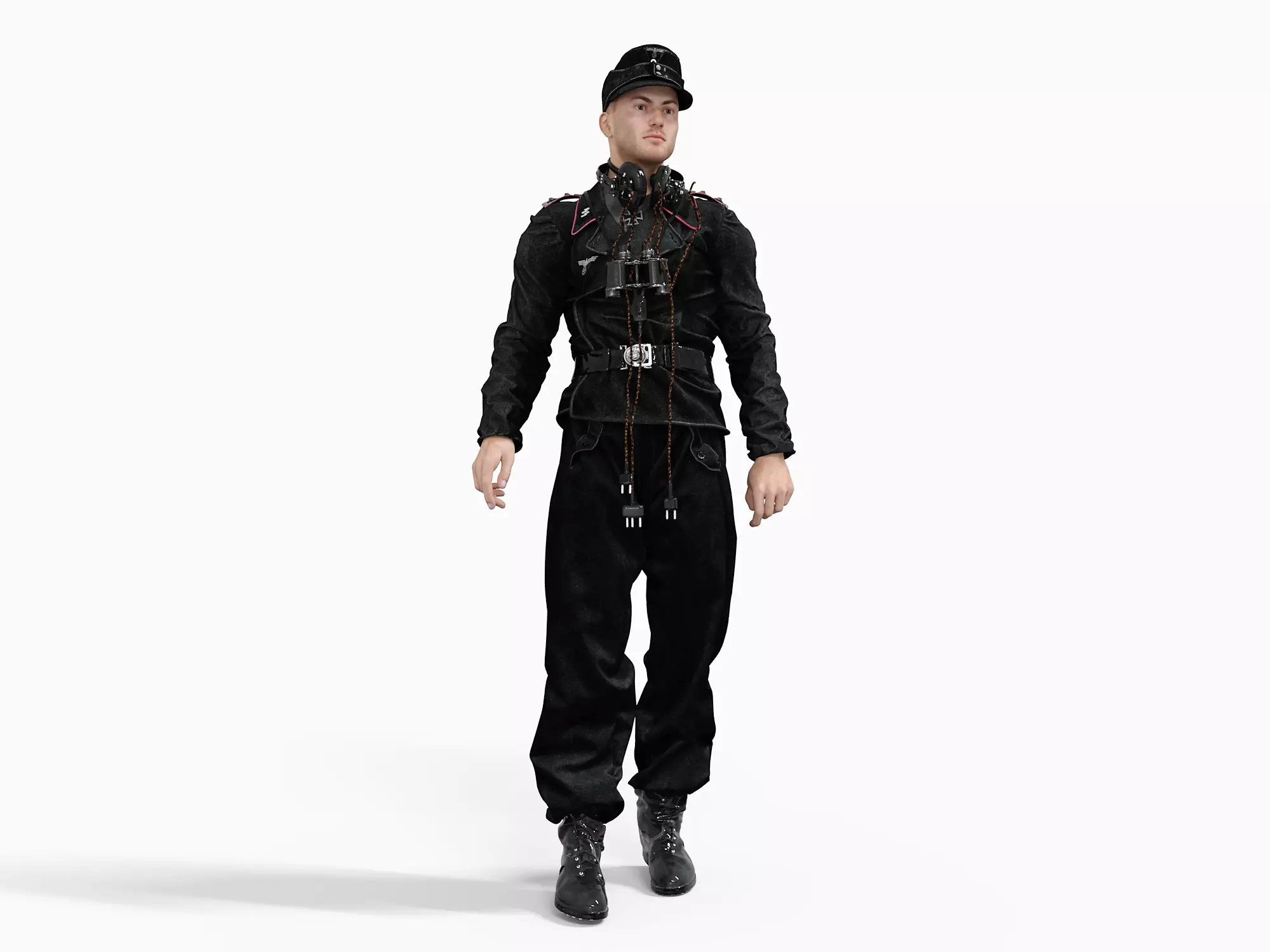 The German Panzerwaffe or Panzertruppe were the men responsible for operating the armored vehicles such as tanks and self-propelled anti-tank guns within the German armed forces. They were known for their black uniforms, and tight fitting, double-breasted jackets, inspired by the uniforms of former Hussars.