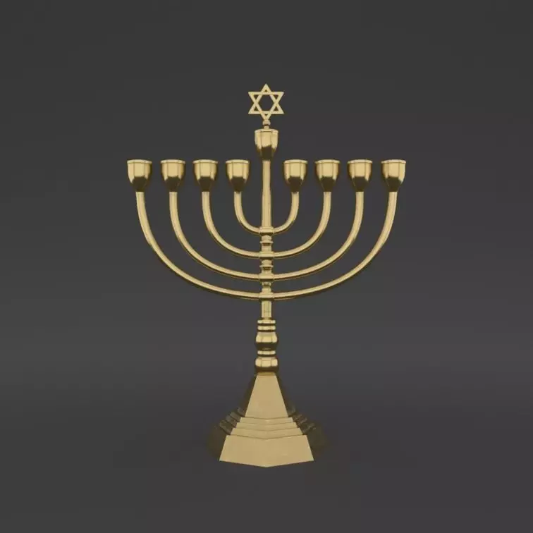 3d model of a Gold menorahPolycount: 20 000UV mapping non overlappingTex: 1024 base color, roghness, metalic, normalUse in advertising, design visualisation, film, etc.
