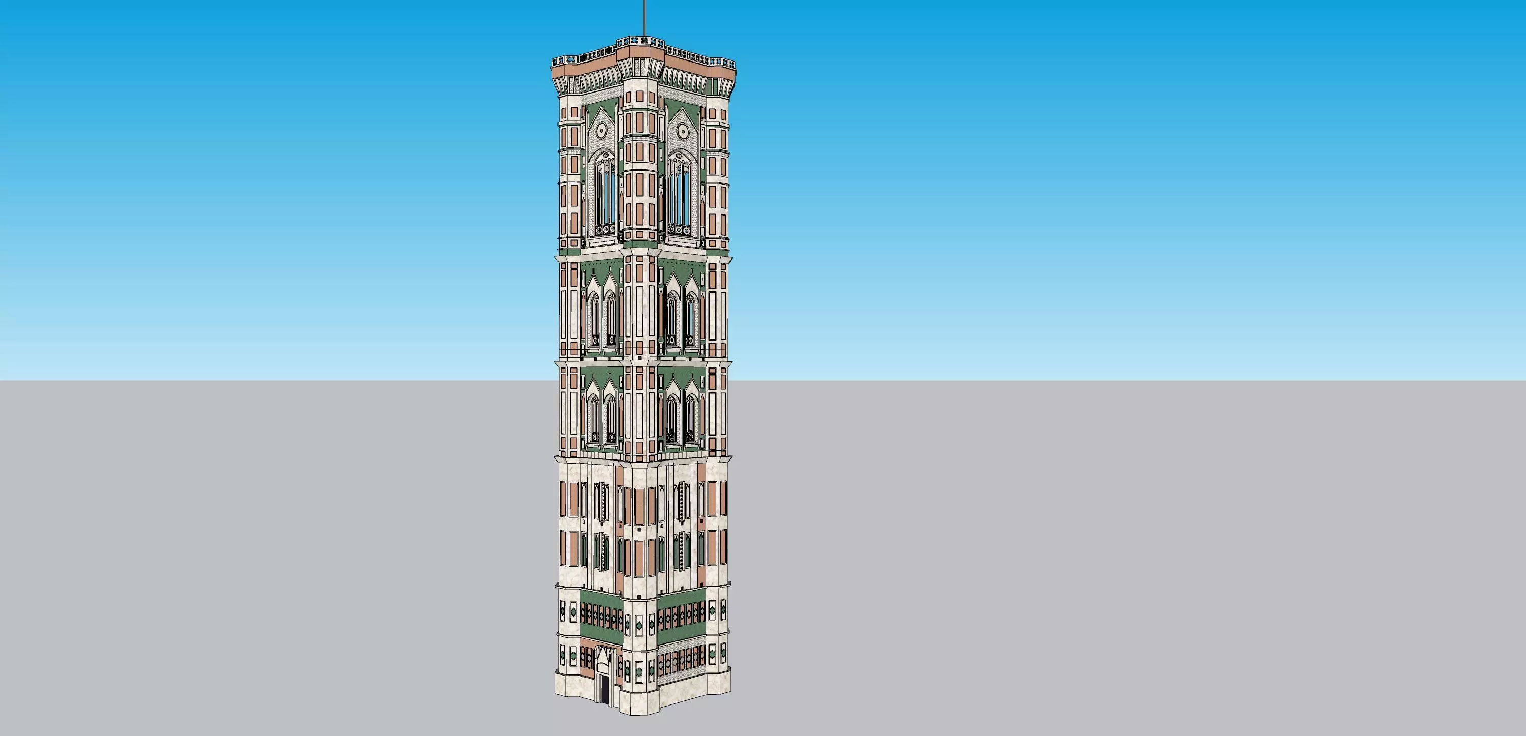 The model has material settings that define how surfaces look (color, shine, transparency, etc.).