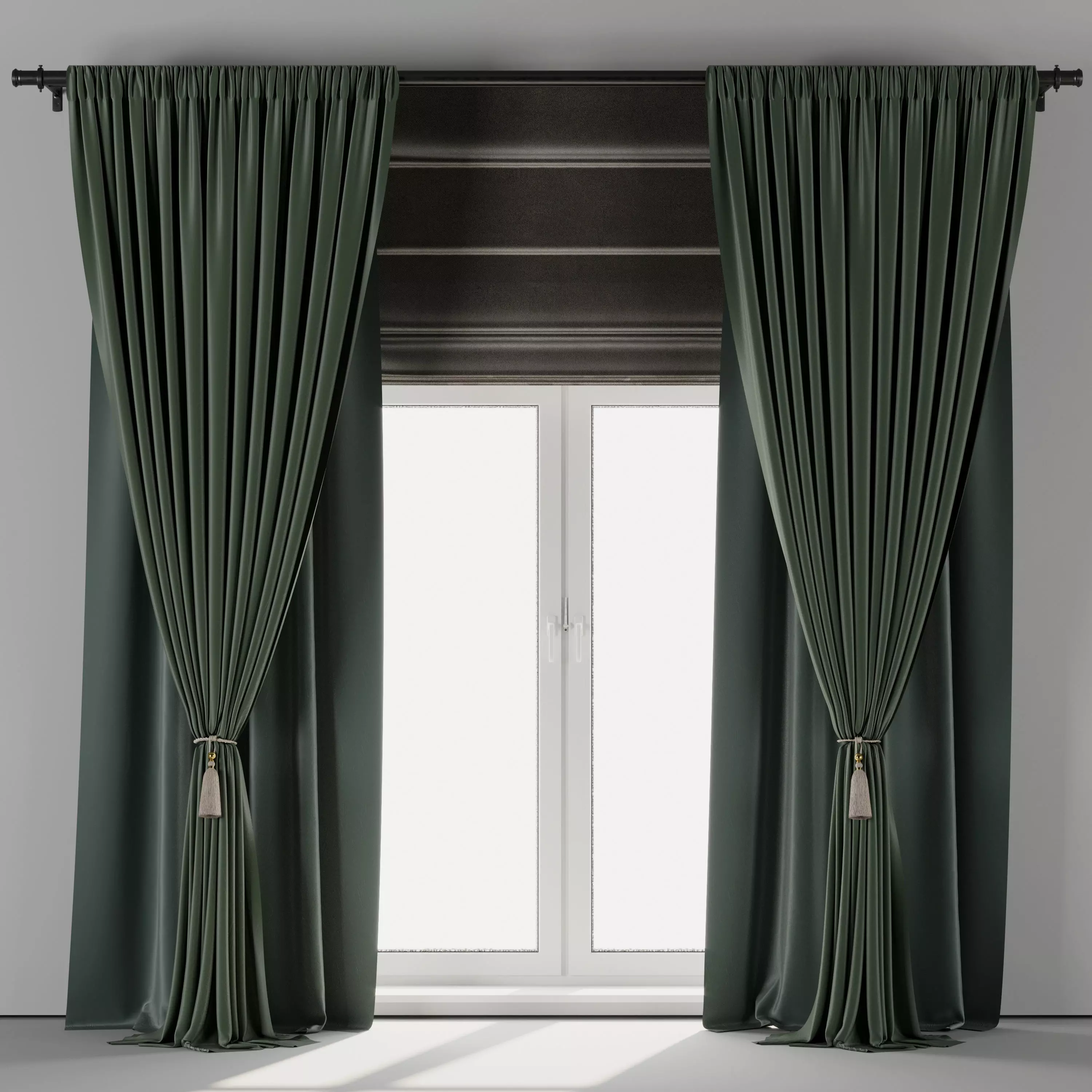 Green Curtains with Roman blinds collections 017 HBH Low-poly 3D model