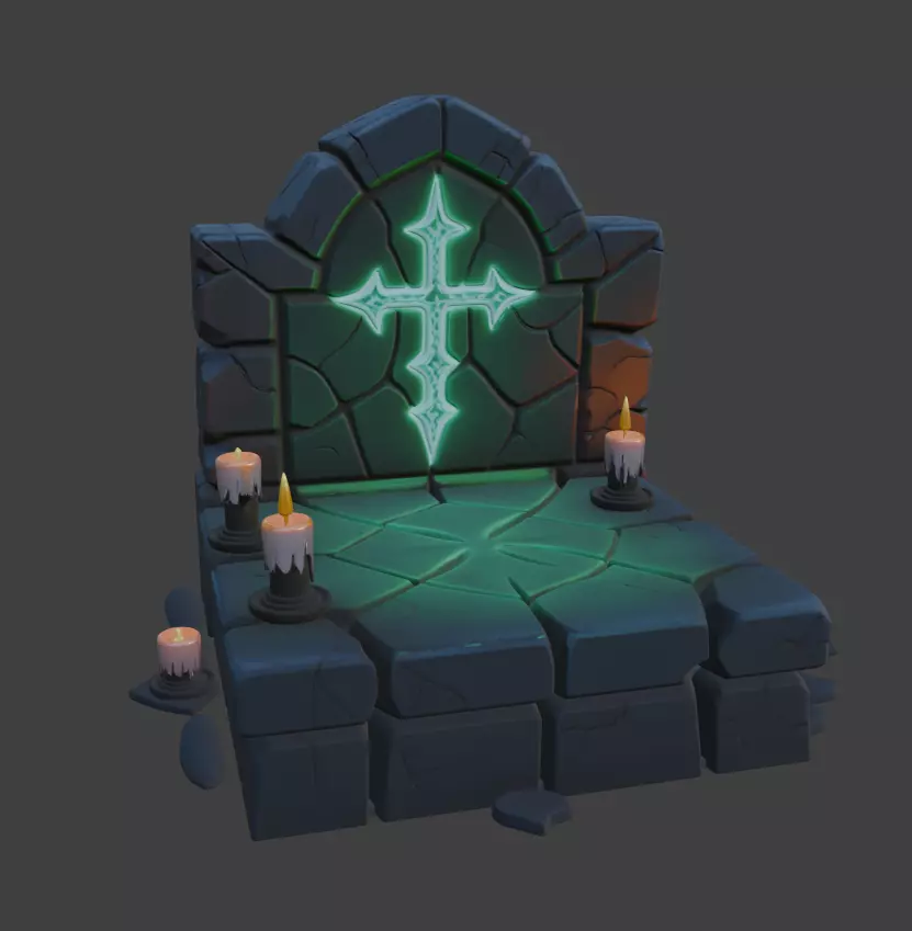 Get into the spooky spirit with this stylized Halloween altar, perfect for your haunted dioramas, RPG tabletop setups, or eerie decorations! This detailed 3D model features a cracked stone platform, glowing cross engraving, and flickering candles – all designed with a stylized, fantasy look. Ideal for Halloween projects, gothic scenes, or dark fantasy displays.