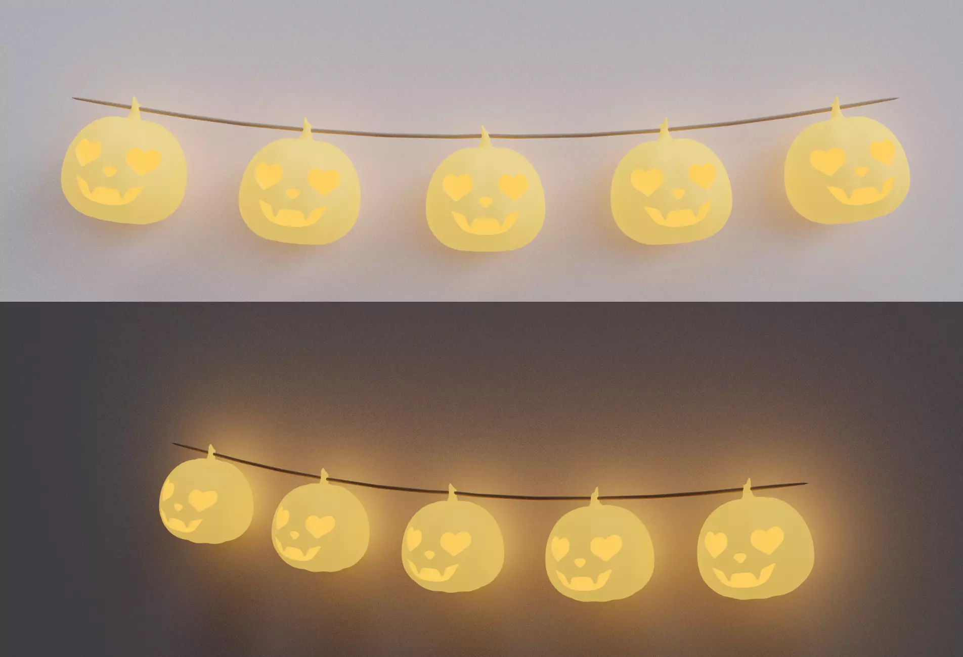 Add a touch of warmth and charm to your Halloween-themed 3D worlds with this glowing pumpkin garland.