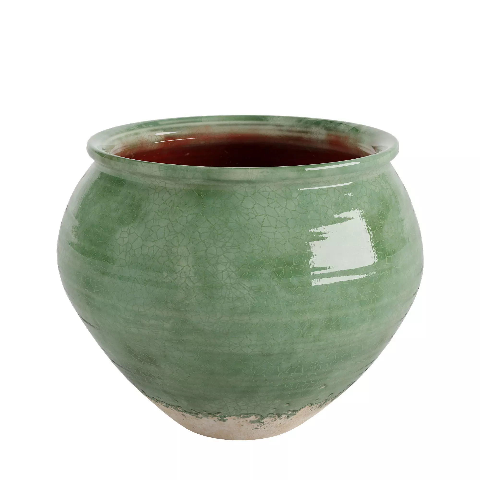 Handmade Terra Cotta Drum Vase in Green Crackle Glaze